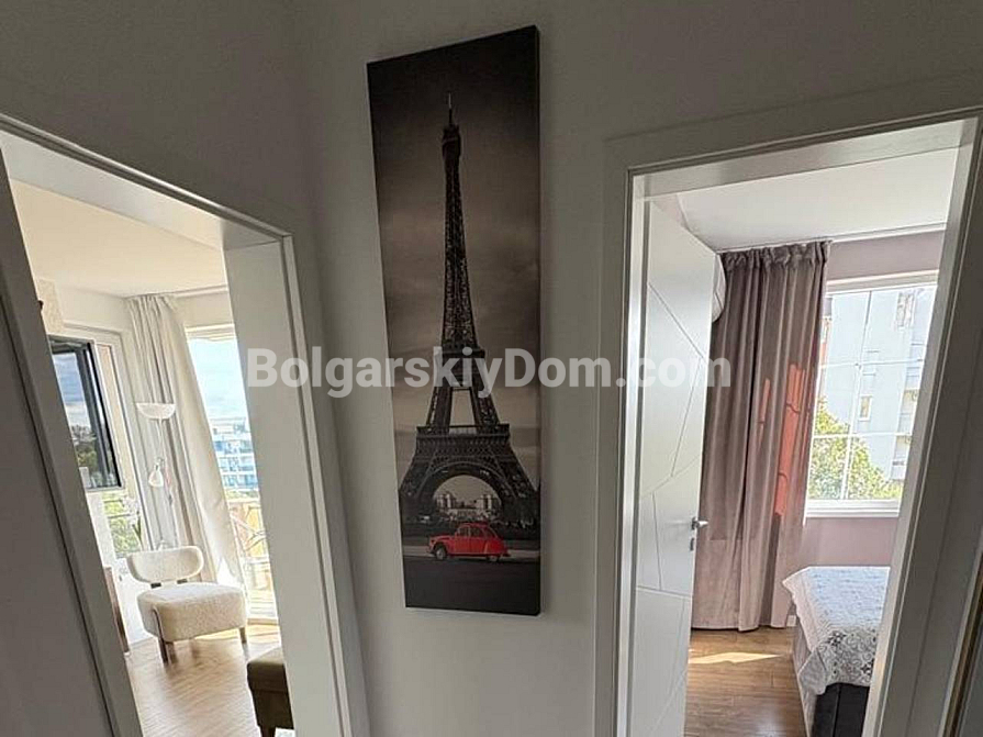 Unser Team von Bolgarskiy Dom hat das perfekte europäische Anlageobjekt auf dem Zweitmarkt entdeckt! Wir präsentieren eine helle und moderne zweizimmerige Wohnung mit einer Fläche von 66 qm in einem ruhigen Stadtteil von Pomorie, in einem ganzjährig bewohnbaren Wohnkomplex. Das Apartment befindet sich im 4., dem vorletzten Stockwerk. Der Grundriss ist durchdacht: ein geräumiges Wohnzimmer mit Küche im modernen Stil (weiße Fronten, Marmorarbeitsplatte, hochwertige Geräte) sowie ein separates Schlafzimmer, das Privatsphäre bietet. Die Wohnung ist gepflegt, stilvoll und komplett möbliert — eine ideale Ready-to-live-Lösung für eine Familie oder zur Vermietung.