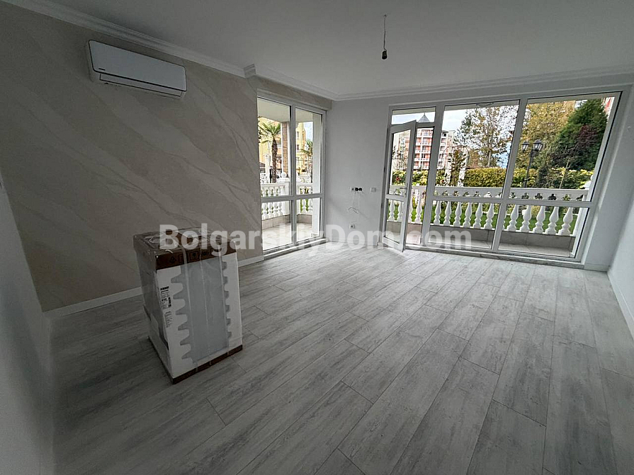 In einem beliebten Projekt von Sunny Beach ist ein Objekt mit einzigartigem Vorteil verfügbar. Bolgarskiy Dom präsentiert eine Zwei-Zimmer-Wohnung mit 56 m² im Magnolia 7 Komplex, ideal für Investitionen! Die Wohnung befindet sich im hohen Erdgeschoss. Das wichtigste Merkmal ist eine großzügige offene Terrasse mit Zugang zu einem eigenen gepflegten Rasen, sodass Sie Ihren eigenen englischen Garten haben. Dieser Bereich kann als natürliche Verlängerung des Wohnzimmers für den Morgenkaffee oder die Abendentspannung im Freien genutzt werden. Der Grundriss ist funktional: Wohnzimmer mit Küche, separates Schlafzimmer und Badezimmer. Die Lage im hohen Erdgeschoss sorgt für natürliches Licht, ausreichende Privatsphäre und Bequemlichkeit für Familien mit Kindern oder ältere Bewohner.