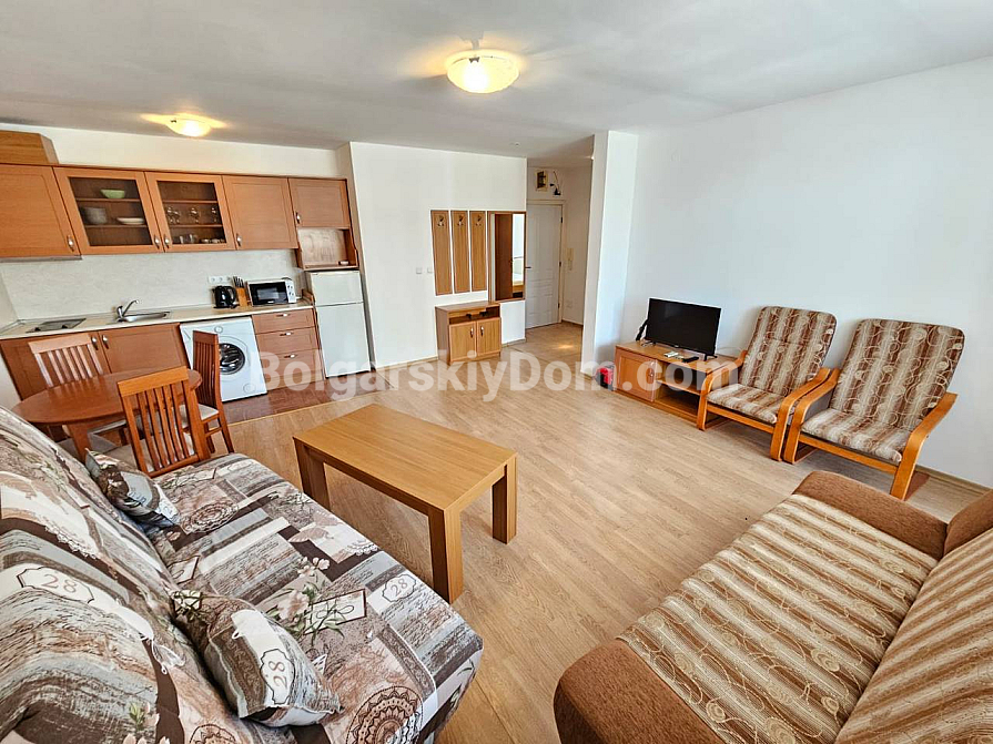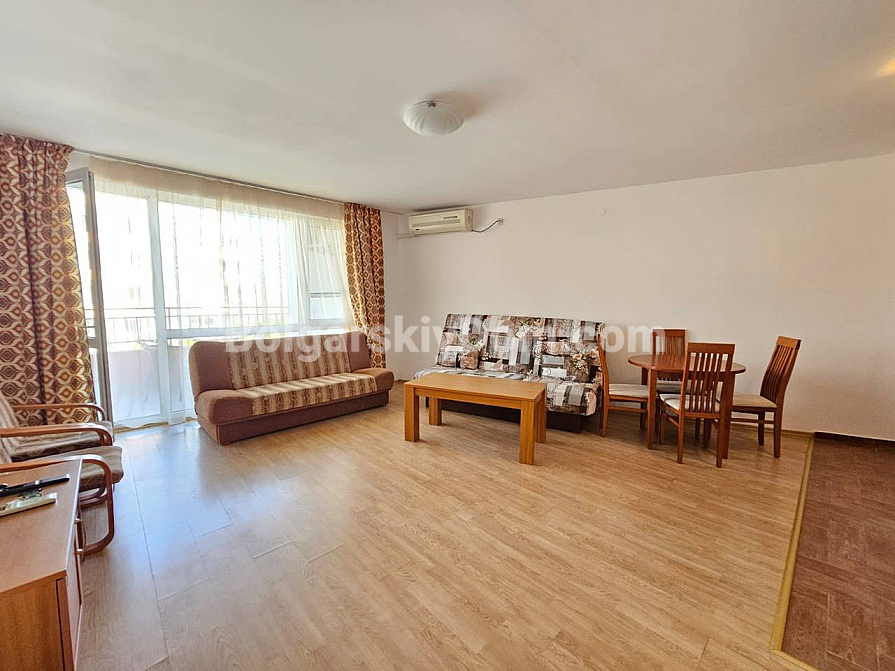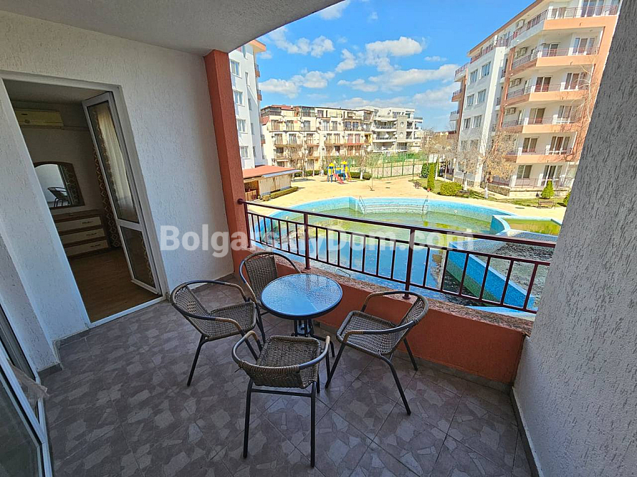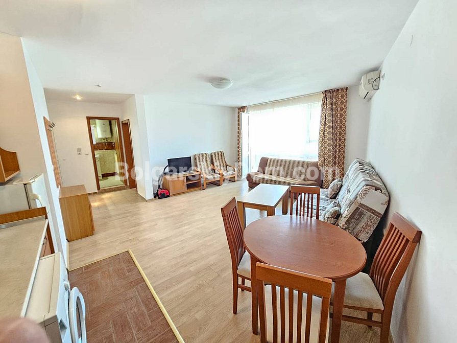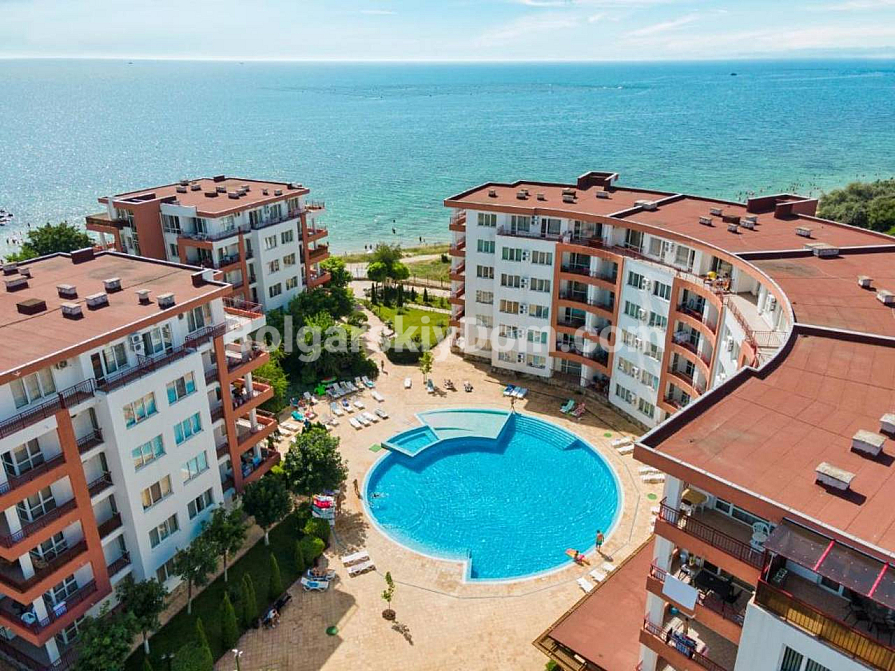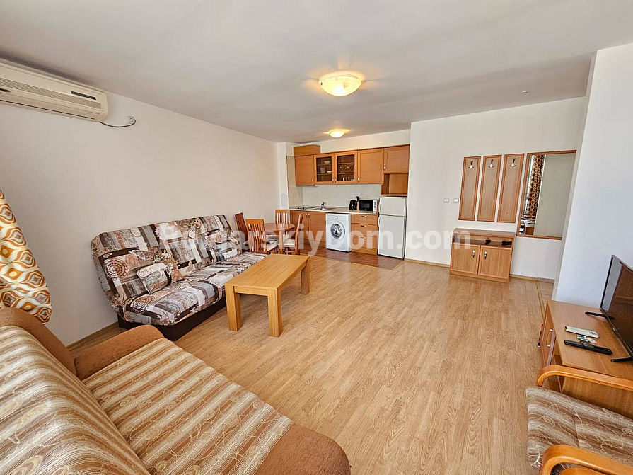 Ein Schlüsselobjekt in erster Linie in einer Wohnanlage mit Tennisplatz! Unsere Agentur Bolgarskiy Dom präsentiert ein großzügiges Zweizimmer-Apartment mit 79 qm Fläche im Komplex Riviera Fort Beach im gemütlichen Ort Ravda. Das Apartment befindet sich im 2. Stock und wird vollständig möbliert und mit Geräten ausgestattet verkauft. Die Raumaufteilung umfasst ein Wohnzimmer mit Küchen-/Essbereich, ein separates Schlafzimmer sowie eine Terrasse mit Blick auf den Pool. Das Interieur ist hell und schlicht, vollständig eingerichtet: Schlafzimmermöbel, Küchenzeile in einer Halbnische, Sitzecke. Diese Immobilie eignet sich ideal für komfortables Wohnen das ganze Jahr über oder zur Vermietung mit hoher Rendite.