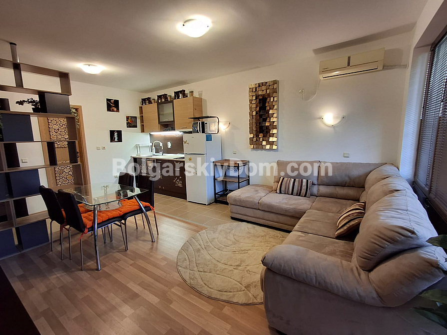 Achtung, ein Objekt in zentraler Lage mit minimaler Wartungsgebühr! Möchten Sie Eigentum im Herzen von Sonnenstrand besitzen und dabei so wenig wie möglich für die Instandhaltung zahlen? Das Team von Bolgarskiy Dom bietet eine Zwei-Zimmer-Wohnung mit 66 qm im Komplex Diamond Bay zum Verkauf an. Sie befindet sich im komfortablen 4. Stock (Gebäude mit Aufzug). Innen erwartet Sie ein funktionaler Grundriss: ein helles Studio mit Küchenbereich, separates Schlafzimmer und eine großzügige Terrasse zum Entspannen. Die Immobilie ist vollständig möbliert und mit Geräten ausgestattet, was eine sofortige Nutzung für Vermietung oder Eigenbedarf ermöglicht.