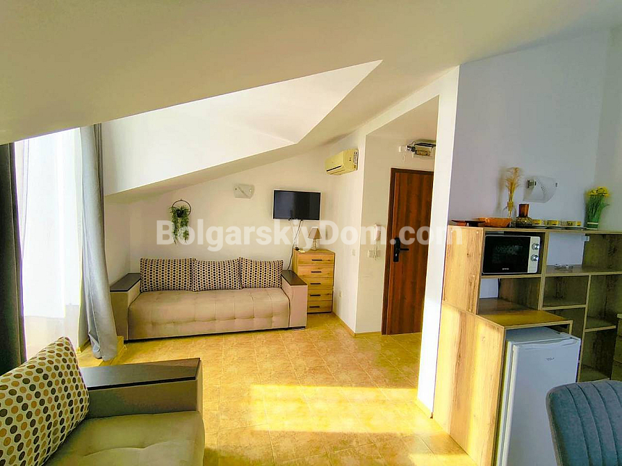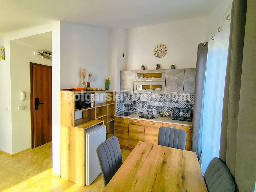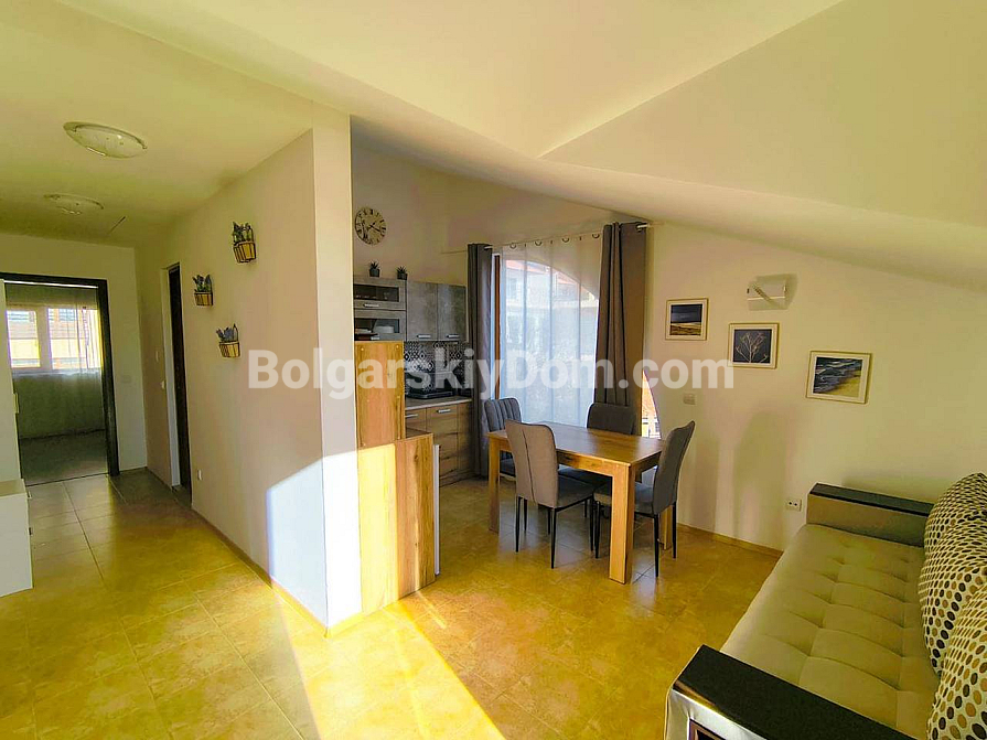 Unter den neuen Angeboten von Bolgarskiy Dom ist ein funktionales Zweizimmerapartment im modernen Komplex Morski Far erschienen. Dieses Objekt mit einer Fläche von 63 qm befindet sich im 3. Stock und ist ein echter Fund: Der Grundriss umfasst eine separate Küchenzone, was an der Küste äußerst selten ist und die Wohnung ideal für dauerhaftes Wohnen macht. Die Wohnung ist komplett möbliert, mit Geräten ausgestattet und bezugsfertig. Von der Terrasse aus hat man einen angenehmen Blick auf die Grünflächen des Komplexes.