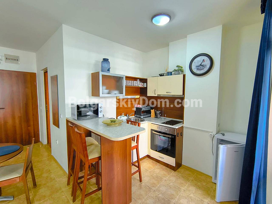 Eine neue, äußerst rentable Gelegenheit von Bolgarskiy Dom! In unserem Katalog ist ein neues, sehr vorteilhaftes Studio im prestigeträchtigen Komplex „Morski Far“ erschienen. Dieses Apartment mit einer Fläche von 48 qm befindet sich im 2. Stock und blickt auf den Pool. Dank der großzügigen Fläche verfügt das Studio über eine funktionale Raumaufteilung und wirkt geräumig und gemütlich. Die Wohnung wird komplett möbliert und mit Haushaltsgeräten ausgestattet verkauft – sie ist also sofort bezugsfertig.
