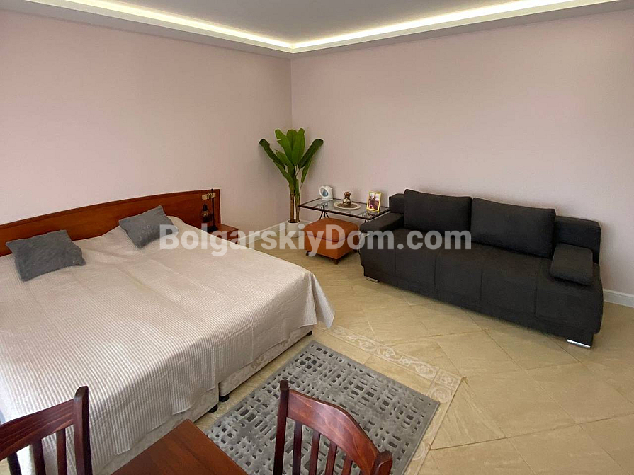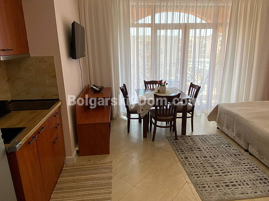 Der Komplex befindet sich im Südwesten von Sonnenstrand, nur 300 Meter vom Strand und Meer entfernt. Eine ideale Lage, die die Nähe zur Küste mit einer gut ausgebauten Infrastruktur verbindet: Supermarkt, Restaurants, Cafés und Sommerattraktionen befinden sich ganz in der Nähe. Der Komplex verfügt über eine hervorragende Infrastruktur: zwei große Pools mit Kinderbereichen, ein Restaurant, eine Bar, Parkplätze und Erholungszonen. Ein Park liegt ebenfalls in unmittelbarer Nähe. Die Wartungsgebühr beträgt den Standardpreis von 12 Euro pro qm.