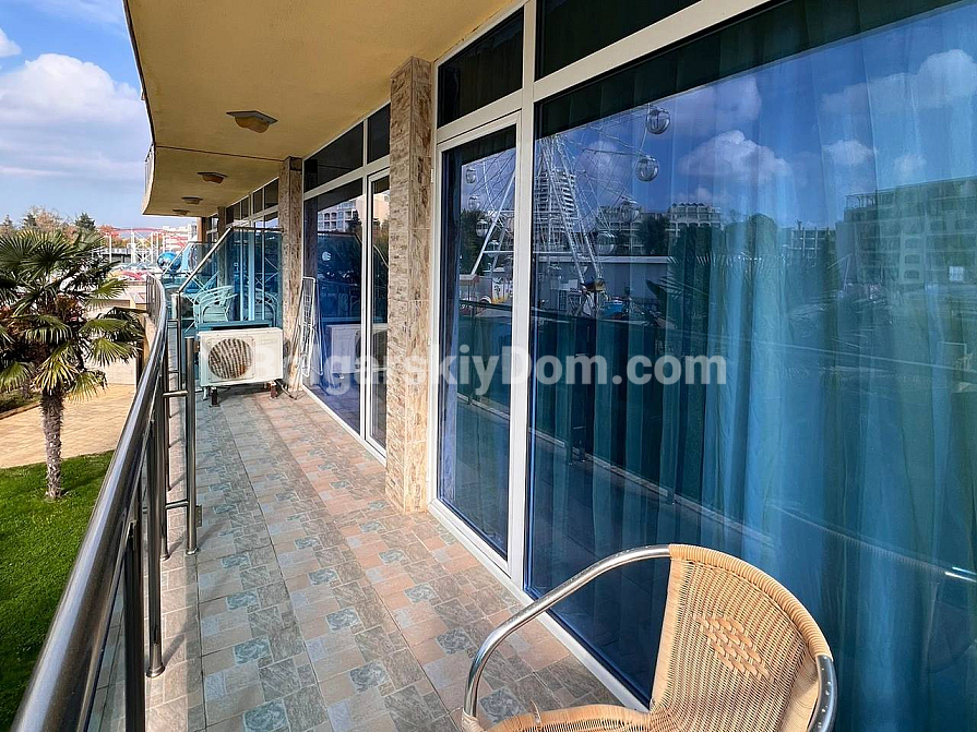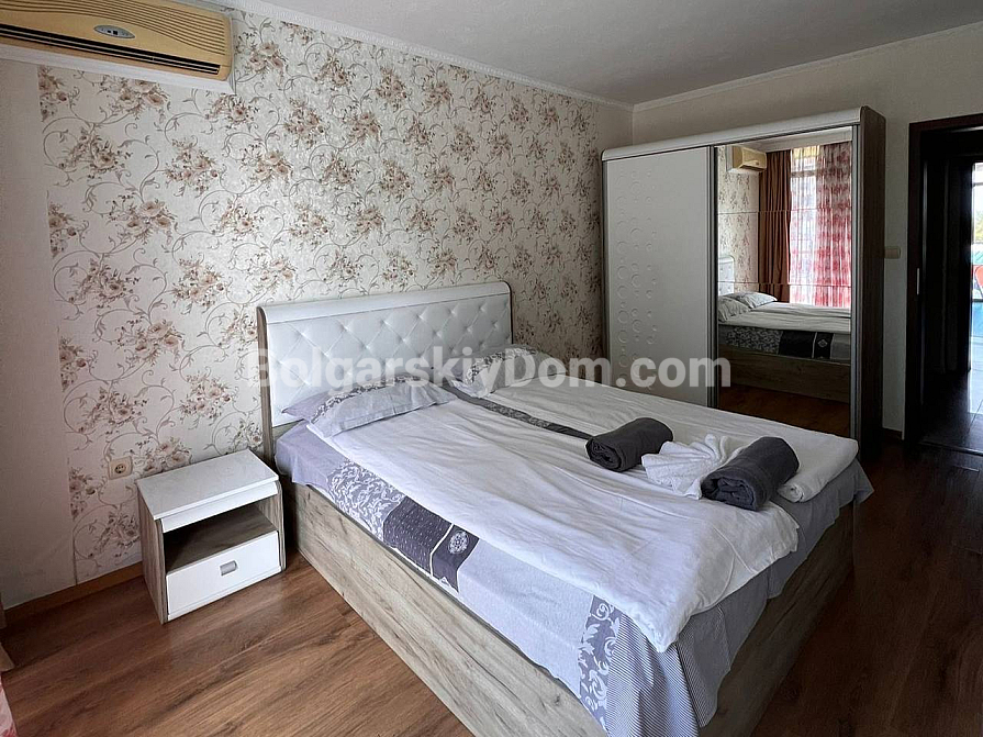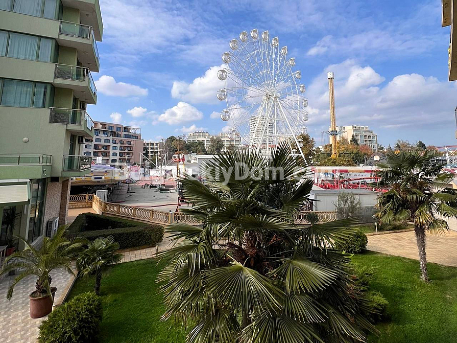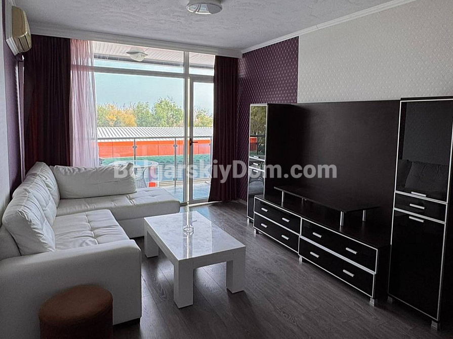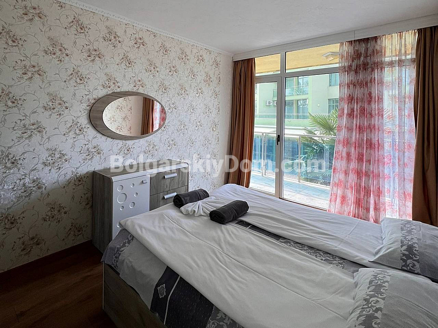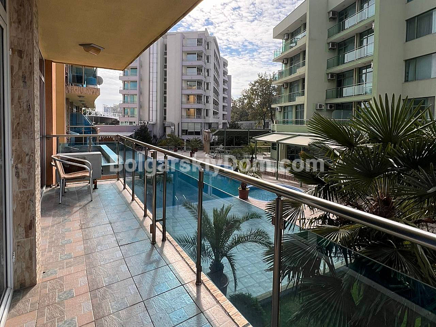 Neuzugang in der Kategorie der Objekte mit Aussicht! Zu den attraktivsten Angeboten von Bolgarskiy Dom in Sunny Beach gehört dieses großzügige Dreizimmer-Apartment. Wir präsentieren eine 101 m² große Wohnung im Komplex Gallery 2. Die Wohnung im 2. Stock bietet eine besonders funktionale Aufteilung: ein helles Wohnzimmer mit Küche, zwei separate Schlafzimmer und zwei komplett ausgestattete Badezimmer mit Duschkabinen. Das wichtigste Highlight — zwei große Terrassen! Eine mit Blick auf den Pool und den Innenhof, die andere zur Straße hin mit teilweisem Meerblick.