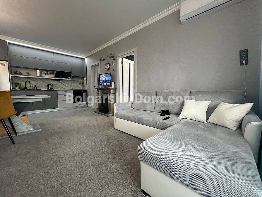 Neuzugang im Katalog! Wir präsentieren eine luxuriöse Zweizimmerwohnung mit 67 qm, gelegen im 3. Stock des Komplexes VIP Vision. Wichtig: Die Wohnung wurde frisch renoviert, alle Möbel und Geräte sind neu, hochwertig und noch unter Garantie. Die Raumaufteilung ist äußerst ergonomisch: ein geräumiges Wohnzimmer, eine separate Küche mit Essbereich, ein gemütliches Schlafzimmer und ein modernes Bad, in dem der Boiler in einem funktionalen Schrank versteckt ist. Das Haupt-Highlight: In der gesamten Wohnung ist Fußbodenheizung installiert, was für einen ganzjährigen Aufenthalt besonders wichtig ist. Die Küche ist maßgefertigt, und es sind Klimaanlagen, Geschirrspüler, Waschmaschine, Backofen und Kühlschrank vorhanden. Vom Flur und vom Schlafzimmer gibt es Zugang zu einem Balkon mit Blick auf einen grünen Park.