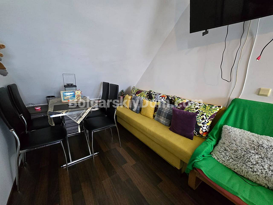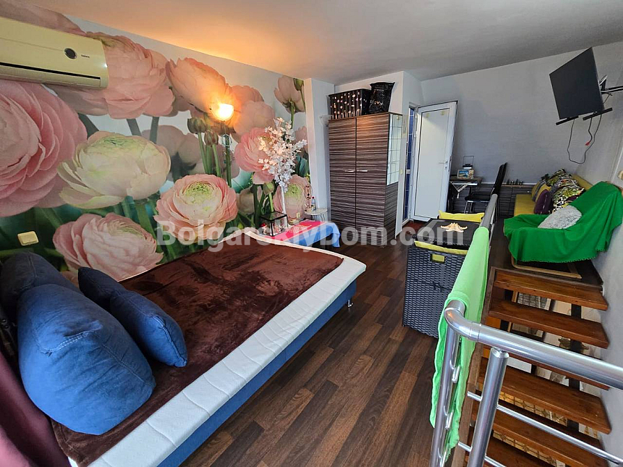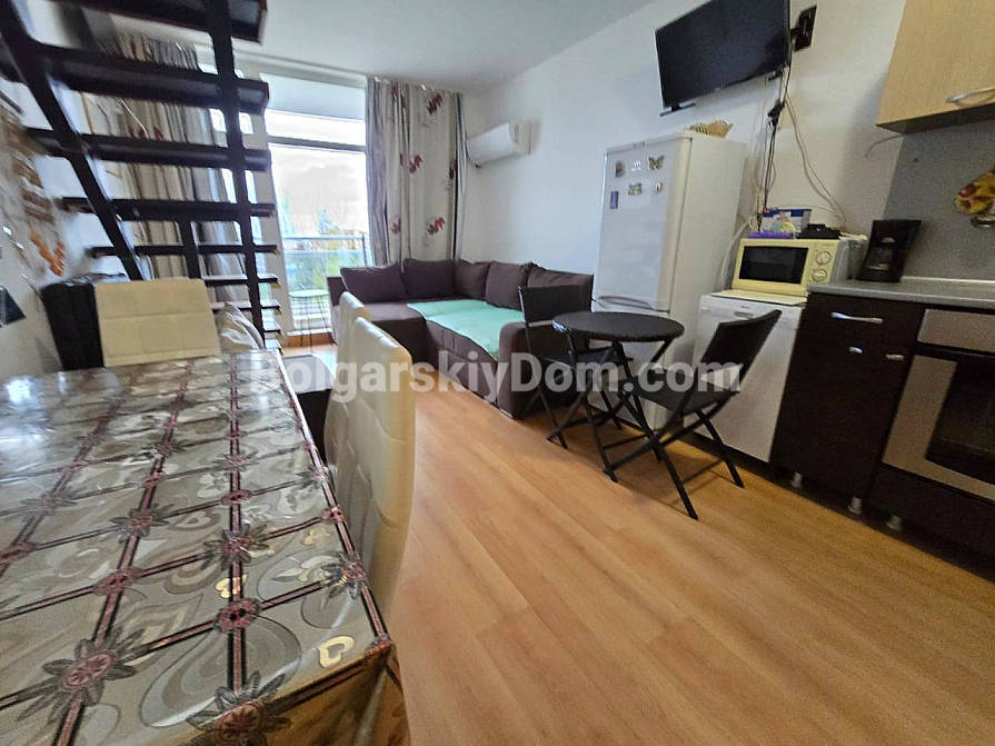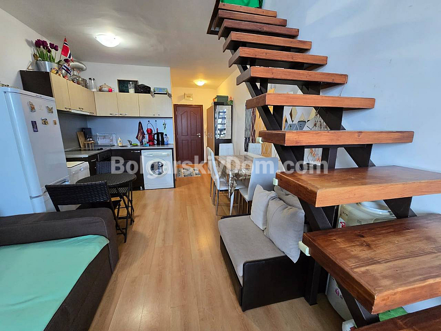 Sonderangebot von Bolgarskiy Dom: eine exklusive Maisonettewohnung (zweistöckiges Apartment) im Wohnkomplex Global Ville in Sonnenstrand. Dieses stilvolle Objekt befindet sich im 5. und 6. Stock und bietet einen beeindruckenden Blick auf die Stadt und das Meer – die perfekte Kulisse für Ihr neues Leben. Das 72 qm große Apartment ist funktional aufgeteilt: ein großzügiges Wohnzimmer mit Kitchenette, ein Schlafzimmer, ein Flur sowie, besonders wichtig, zwei Badezimmer und zwei große Terrassen. Sie erhalten ein bezugsfertiges Zuhause, komplett möbliert und mit neuer Technik ausgestattet.