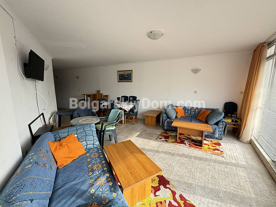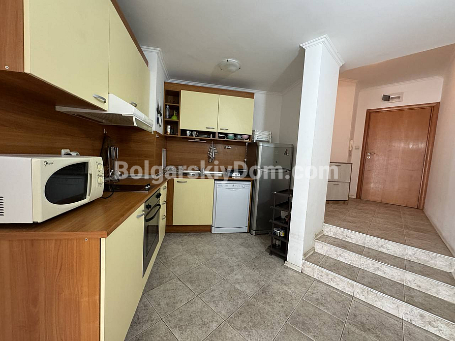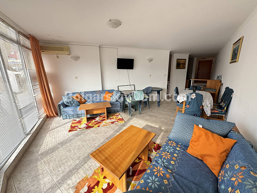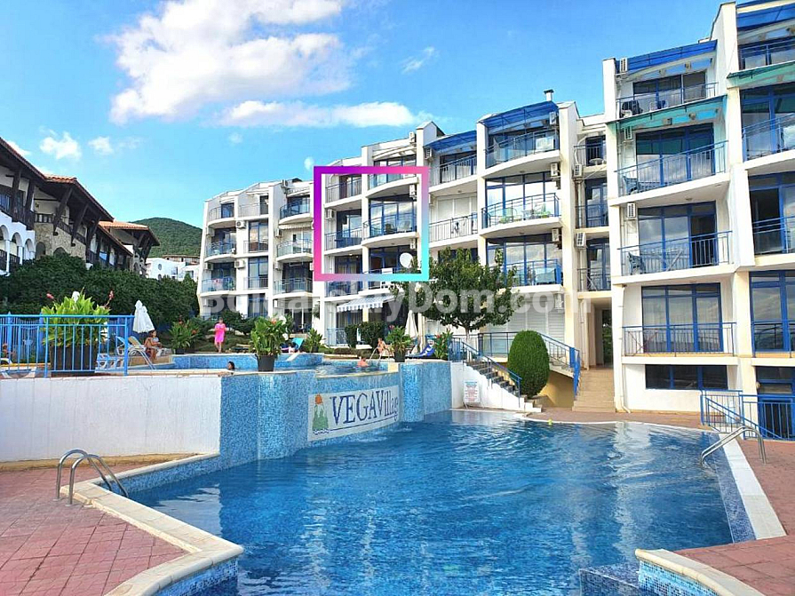 Nur 50 Meter vom Meer entfernt! Wir präsentieren eine gemütliche Zwei-Zimmer-Wohnung in zweiter Meereslinie in Sveti Vlas. Die Immobilie befindet sich im 2. Stock des Vega Village Komplexes und ist vollständig verkaufsbereit (Akt 16). Die Wohnung ist sehr hell und geräumig, mit einer Gesamtfläche von 88 qm. Die Aufteilung umfasst einen Flur, eine Wohnküche, ein separates Schlafzimmer, ein Badezimmer und eine Terrasse: standardmäßig, jedoch mit größeren Räumen. Die Wohnung wird vollständig möbliert und mit allen notwendigen Geräten verkauft – ideal, um sie an Touristen zu vermieten oder selbst zu wohnen!