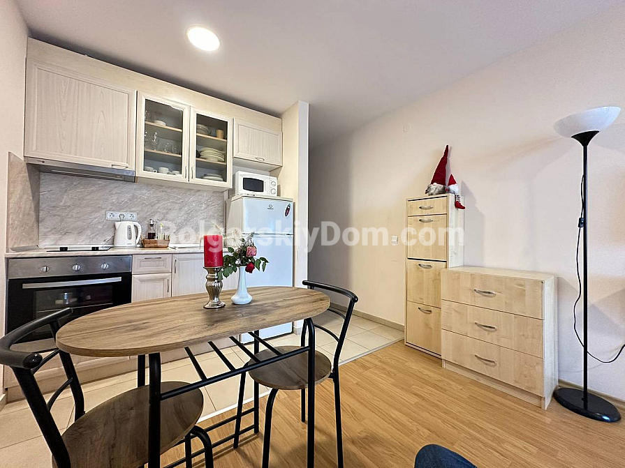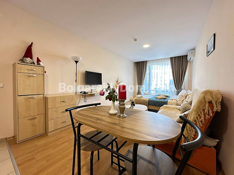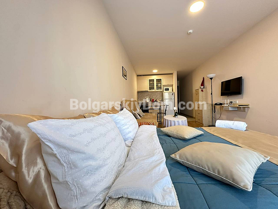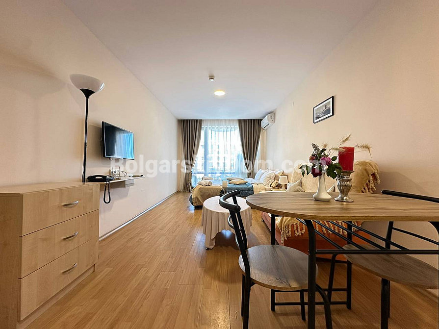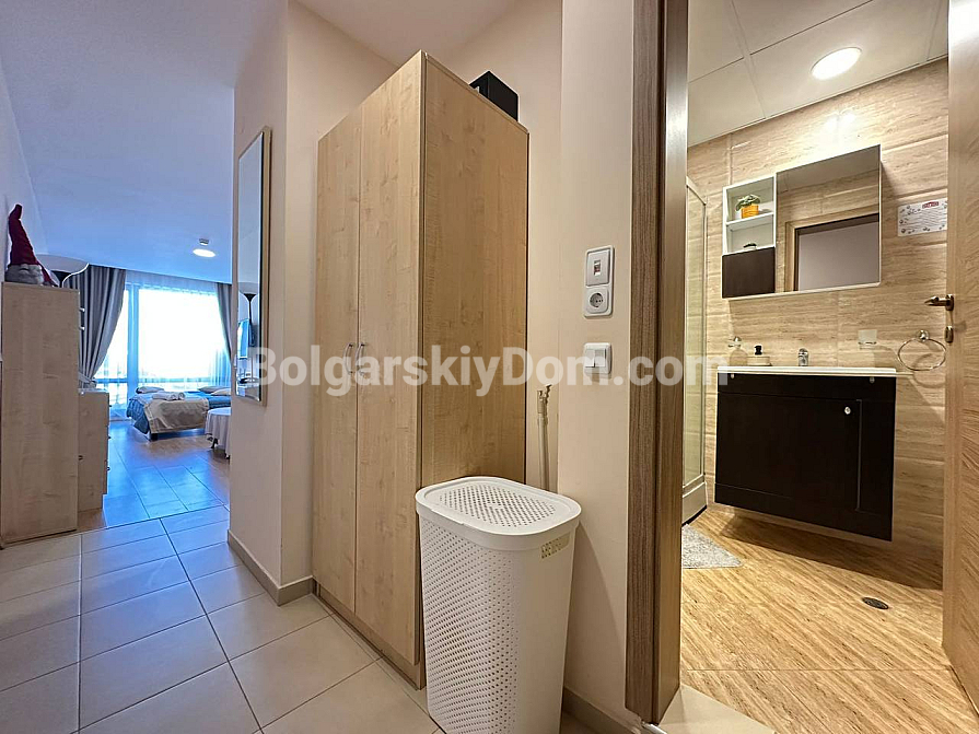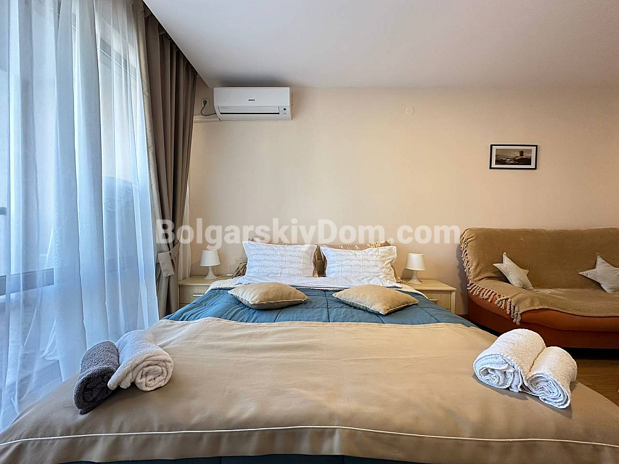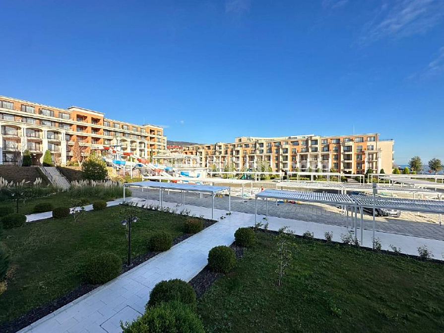 Erste Meereslinie, Meerblick und eine Premiumanlage in Sveti Vlas! Von Bolgarskiy Dom – ein exklusives Studio mit einer Fläche von 48 m² im erstklassigen Komplex Premier Fort Beach. Die Immobilie befindet sich im 2. Stock von insgesamt 5 Etagen, nur 50 Meter vom luxuriösen Sandstrand entfernt. Das Apartment wird schlüsselfertig verkauft, mit einem angenehmen, weichen Interieur, Möblierung sowie einer ausgestatteten Terrasse mit offenem, beeindruckendem Meerblick. Es handelt sich um eine sofort nutzbare Immobilie für exklusiven Urlaub oder für eine direkte und besonders renditestarke Vermietung. Ein wichtiger Vorteil: Für die Immobilie wird eine zinsfreie Ratenzahlung bis 2031 angeboten!