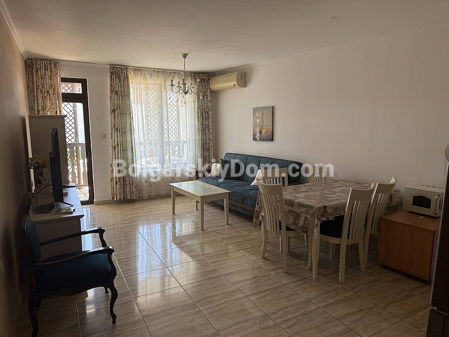 Die Immobilienagentur Bolgarskiy Dom lädt Sie ein, die Lebensqualität im prestigeträchtigen Sveti Vlas mit unserem neuen Angebot im Wohnkomplex Mühle kennenzulernen. Es handelt sich um eine geräumige Dreizimmerwohnung mit einer Wohnfläche von 79 qm und zwei Schlafzimmern, gelegen im komfortablen zweiten Stock. Der Grundriss ist ideal für Familien oder Freundesgruppen: zwei separate Schlafzimmer sowie — ein seltener und äußerst wertvoller Vorteil — zwei Badezimmer. Das Wohnzimmer ist großzügig gestaltet, mit einem klar abgegrenzten Küchenbereich, und vom Balkon genießen Sie den Blick auf den Innenhof sowie einen kleinen Meerblick. Die Wohnung wird vollständig möbliert verkauft, während Akt 16 und Haushaltsstromtarife für transparente und niedrige Nebenkosten sorgen.