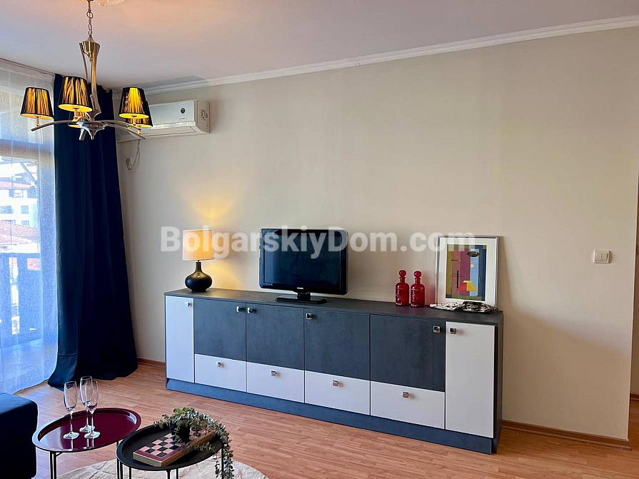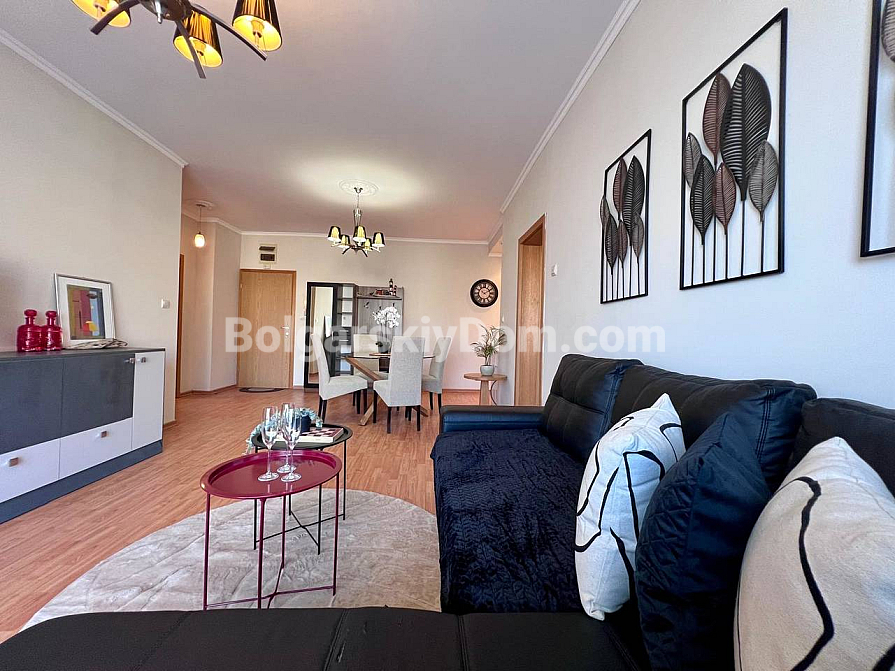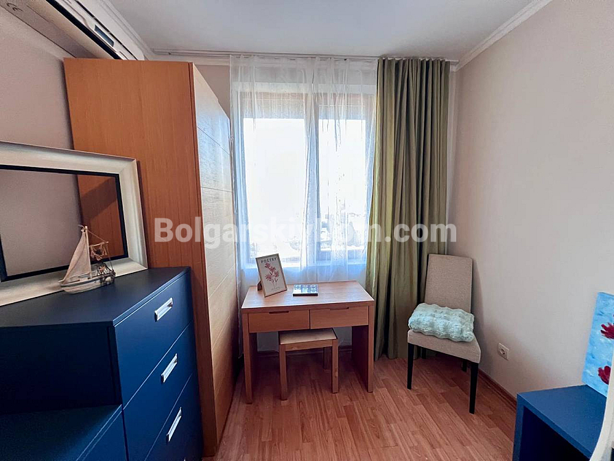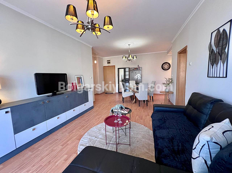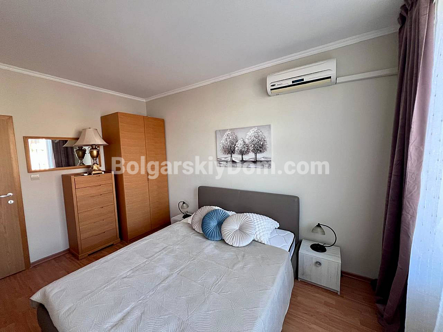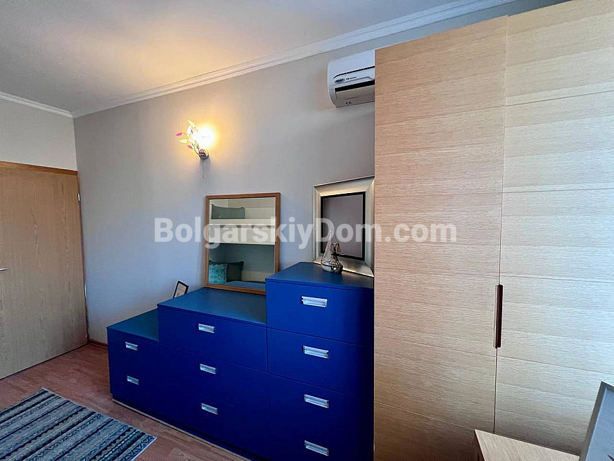 Erste Meereslinie und direkter Blick auf das Schwarze Meer direkt aus Ihren Fenstern. Zum Verkauf steht eine großzügige Wohnung mit zwei Schlafzimmern und einer Wohnfläche von 101 qm im bekannten Komplex Garden of Eden in Sveti Vlas. Es handelt sich um eine echte Strandlage — nur 50 Meter bis zum Strand. Die Wohnung befindet sich im vierten Stock und bietet von den Fenstern sowie vom Balkon einen direkten Blick auf den Pool und das Meer. Der Grundriss umfasst einen Eingangsbereich, ein großes Wohnzimmer mit Küchenbereich, zwei separate Schlafzimmer und zwei Badezimmer. Die Wohnung ist vollständig möbliert und mit Haushaltsgeräten ausgestattet, alles in gutem Zustand und sofort bezugsfertig. Genau solche Immobilien im mittleren Preissegment sind bei Investoren besonders gefragt. Kontaktieren Sie uns.