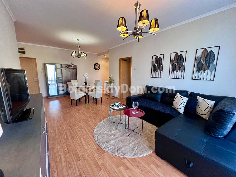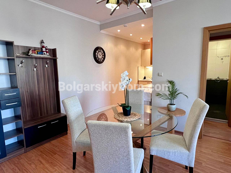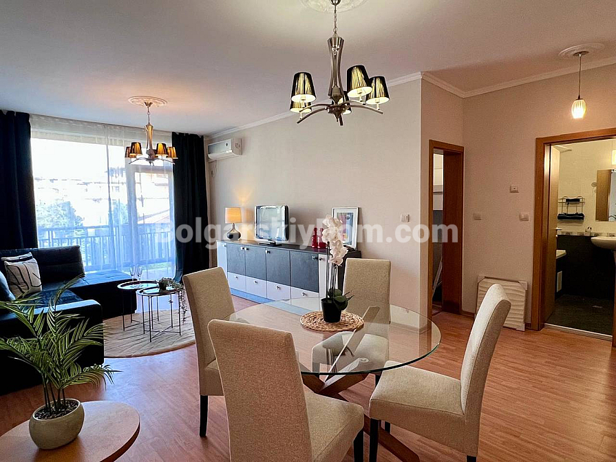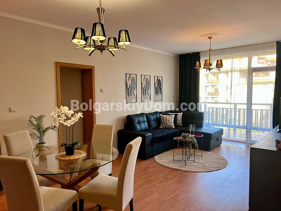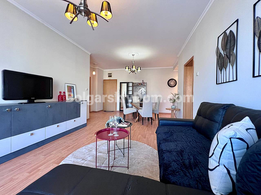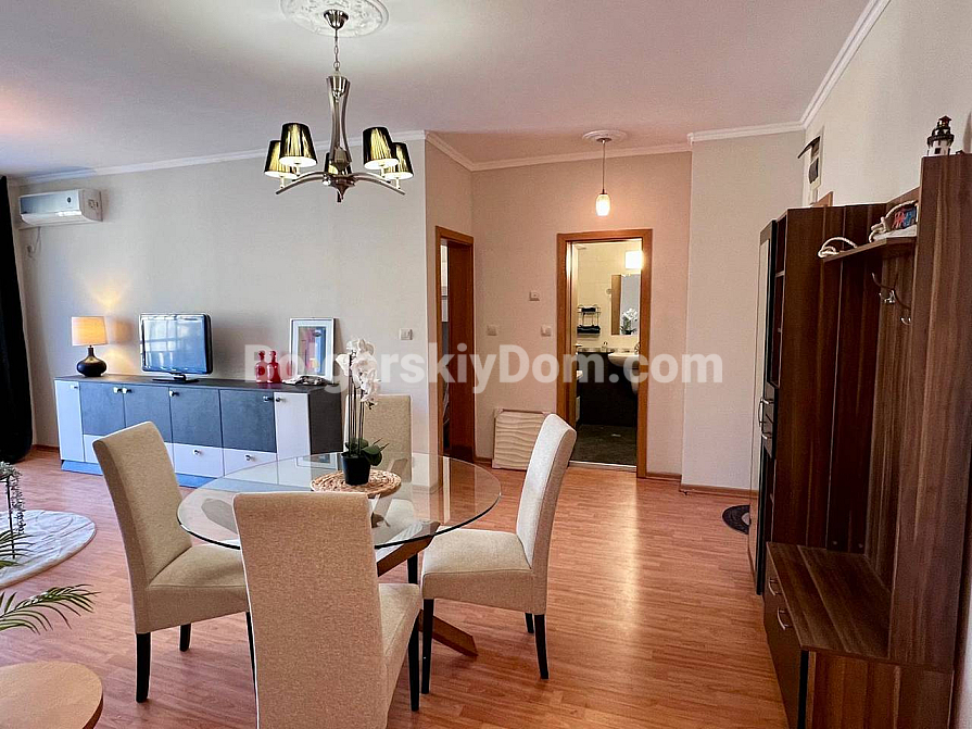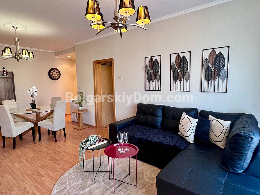 Erste Meereslinie und direkter Blick auf das Schwarze Meer direkt aus Ihren Fenstern. Zum Verkauf steht eine großzügige Wohnung mit zwei Schlafzimmern und einer Wohnfläche von 101 qm im bekannten Komplex Garden of Eden in Sveti Vlas. Es handelt sich um eine echte Strandlage — nur 50 Meter bis zum Strand. Die Wohnung befindet sich im vierten Stock und bietet von den Fenstern sowie vom Balkon einen direkten Blick auf den Pool und das Meer. Der Grundriss umfasst einen Eingangsbereich, ein großes Wohnzimmer mit Küchenbereich, zwei separate Schlafzimmer und zwei Badezimmer. Die Wohnung ist vollständig möbliert und mit Haushaltsgeräten ausgestattet, alles in gutem Zustand und sofort bezugsfertig. Genau solche Immobilien im mittleren Preissegment sind bei Investoren besonders gefragt. Kontaktieren Sie uns.