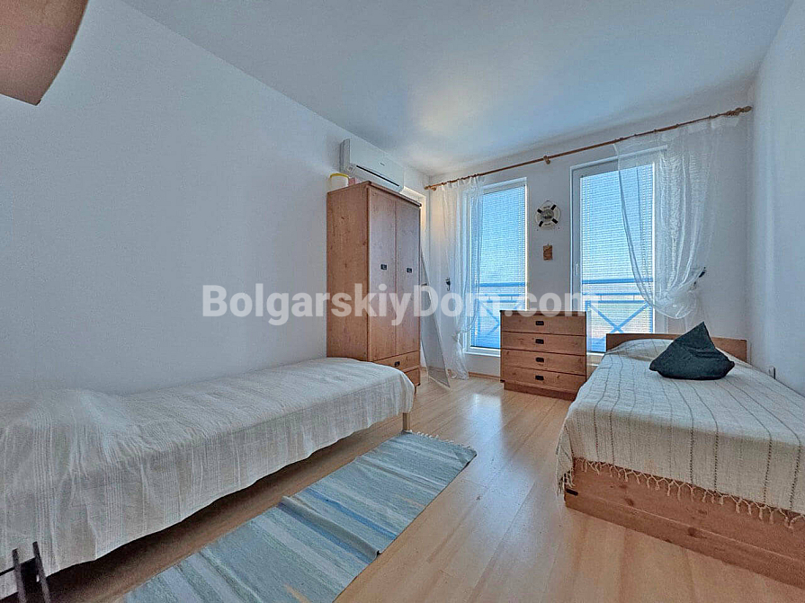 Ein hervorragendes neues Angebot zu einem ebenso attraktiven Budget. Bolgarskiy Dom präsentiert eine Option für alle, die eine vollwertige Familienwohnung zum Preis eines Studios suchen. Diese Drei-Zimmer-Wohnung mit zwei Schlafzimmern und einer Wohnfläche von 70 qm befindet sich im Komplex Sunny Day 6 — einer Anlage, die für ihre Ruhe und ihre umfangreiche interne Infrastruktur geschätzt wird. Die Wohnung liegt im Erdgeschoss und bietet einen bequemen Zugang zu den Spazierwegen ohne Treppen. Der Grundriss ist äußerst funktional: Das Wohnzimmer ist geschickt in Küchen- und Wohnbereich unterteilt, während zwei separate Schlafzimmer ausreichend Platz für eine große Familie bieten. Zwei Terrassen mit Blick auf die gepflegte Anlage vermitteln das Gefühl eines Hauses im Grünen.