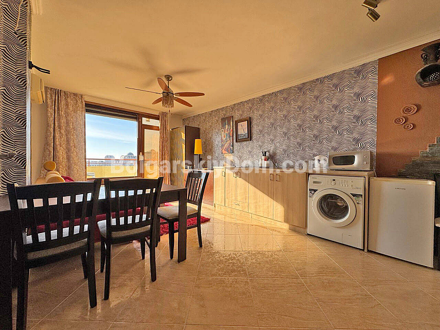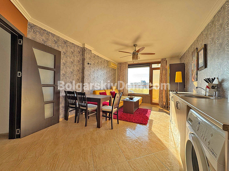 Neu im Katalog der Bestandsimmobilien. Ab heute können Sie Eigentümer einer gemütlichen Zwei-Zimmer-Wohnung im Komplex Villa Antonia werden — einer Lage, die für Ruhe, Privatsphäre und die entspannte Atmosphäre von Sveti Vlas steht. Die Wohnung mit einer Fläche von 61 qm befindet sich im sechsten Stock und bietet von zwei Balkonen einen teilweisen Meerblick. Der Grundriss ist komfortorientiert gestaltet: ein großzügiges Wohnzimmer mit integrierter Küche sowie ein Schlafzimmer mit einem separaten Arbeitsbereich, was besonders zeitgemäß ist. Die Immobilie befindet sich in ausgezeichnetem Zustand und ist vollständig möbliert und mit Haushaltsgeräten ausgestattet, sodass ein sofortiger Einzug möglich ist.