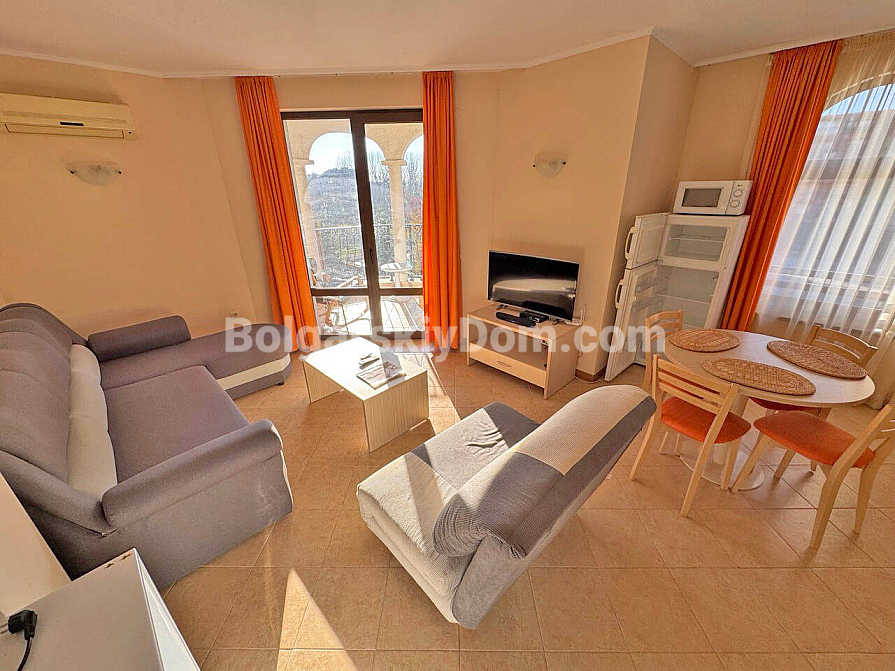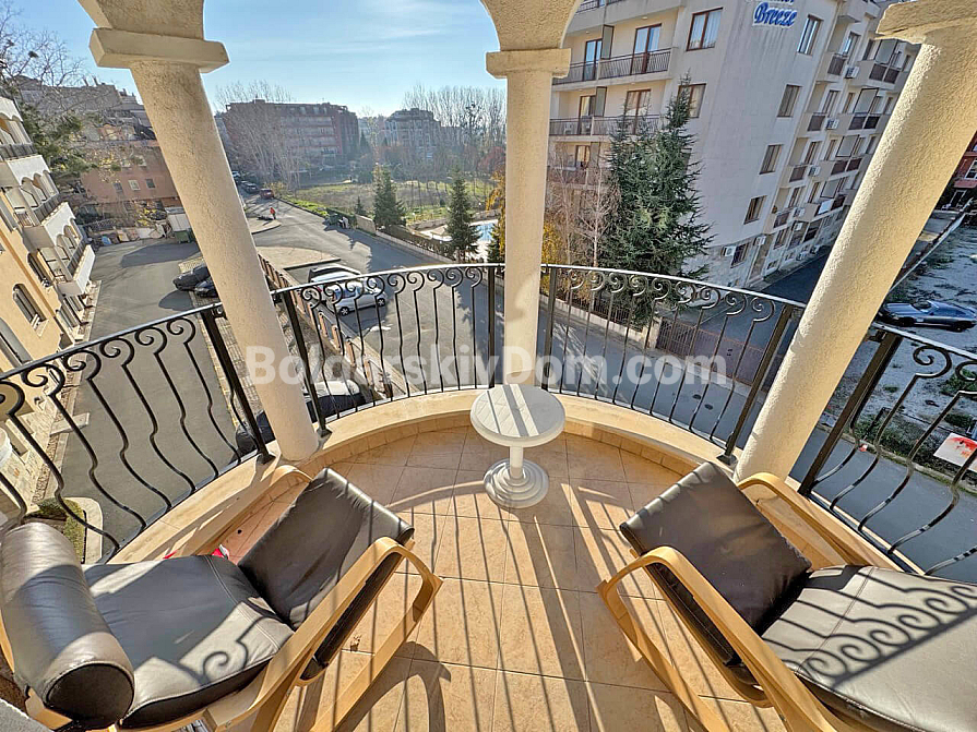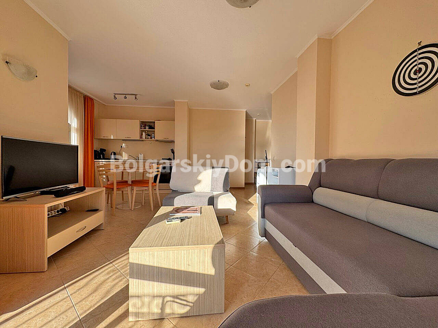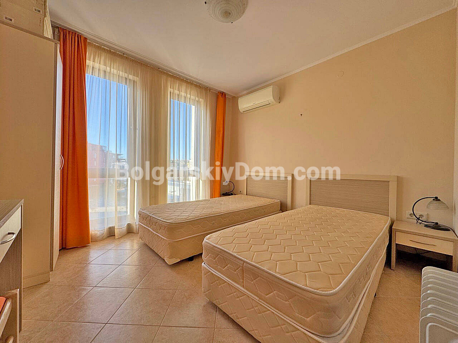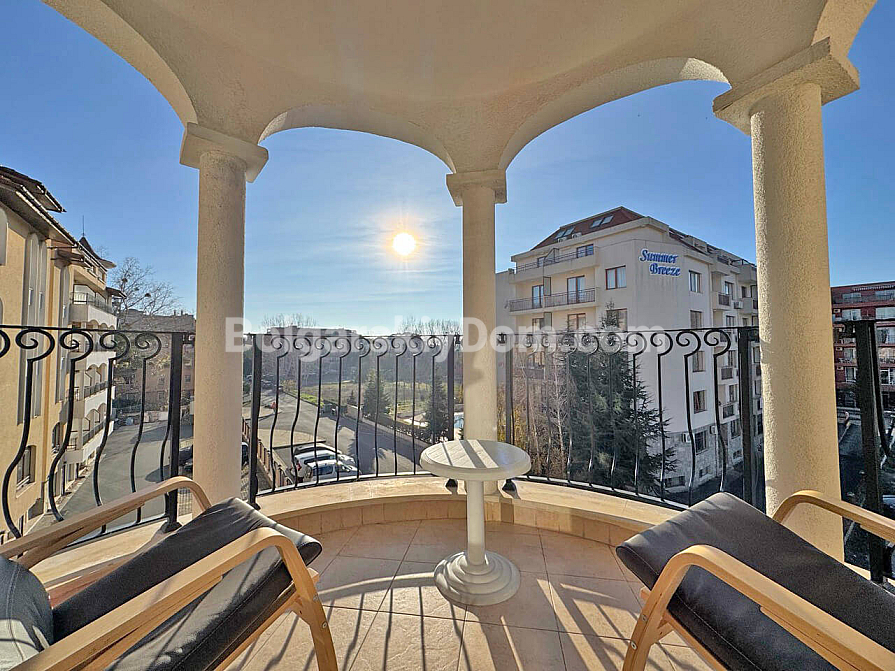 Neu im Angebot. Eine familienfreundliche Drei-Zimmer-Wohnung im Royal Sun, einem der gefragtesten Komplexe in Sonnenstrand, ist ab sofort im Katalog von Bolgarskiy Dom verfügbar und bereit für Besichtigungen. Die 93 qm große Wohnung beeindruckt durch ihre Großzügigkeit: ein geräumiges Wohnzimmer, zwei separate Schlafzimmer sowie ein seltenes, aber äußerst wertvolles Plus — zwei voll ausgestattete Badezimmer. Besonders hervorzuheben ist der große halbrunde Balkon, der garantiert zu Ihrem Lieblingsplatz für den Morgenkaffee wird. Die Wohnung befindet sich im vierten Stock, ist vollständig möbliert und bezugsfertig, ohne zusätzlichen Renovierungsaufwand oder den Kauf von Haushaltsgeräten.