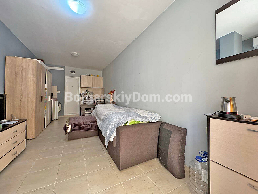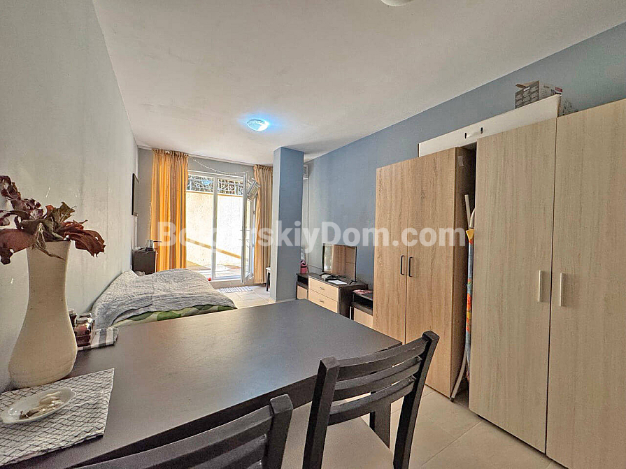 Von der Immobilienagentur Bolgarskiy Dom — eine weitere liquide Neuheit in einem Top-Resort! Wir haben ein kompaktes, aber funktionales Studio mit einer Fläche von 29 m² im Komplex Marvel Deluxe ausgewählt. Die Wohnung befindet sich im Erdgeschoss, was einen schnellen Zugang zur Infrastruktur und zum Pool ohne Treppen ermöglicht und besonders für Familien mit älteren Menschen oder Kindern geeignet ist. Die Raumaufteilung ist klassisch und voll funktionsfähig: Eingangsbereich, heller Wohnraum mit Küchenzeile, kombiniertes Badezimmer und eine eigene Terrasse. Die Wohnung befindet sich in ausgezeichnetem Zustand und ist sofort nach dem Kauf nutzbar — sowohl für den eigenen Urlaub als auch als fertiges Anlageobjekt zur Vermietung.