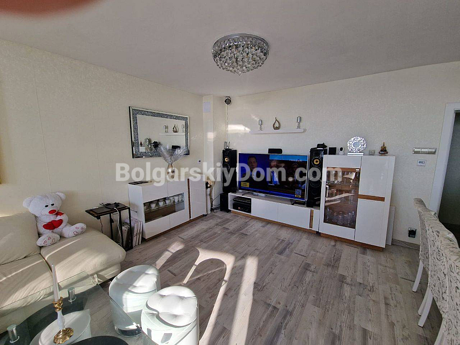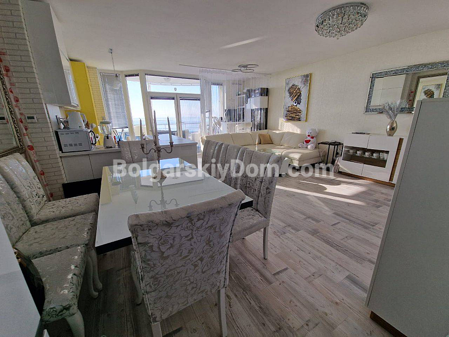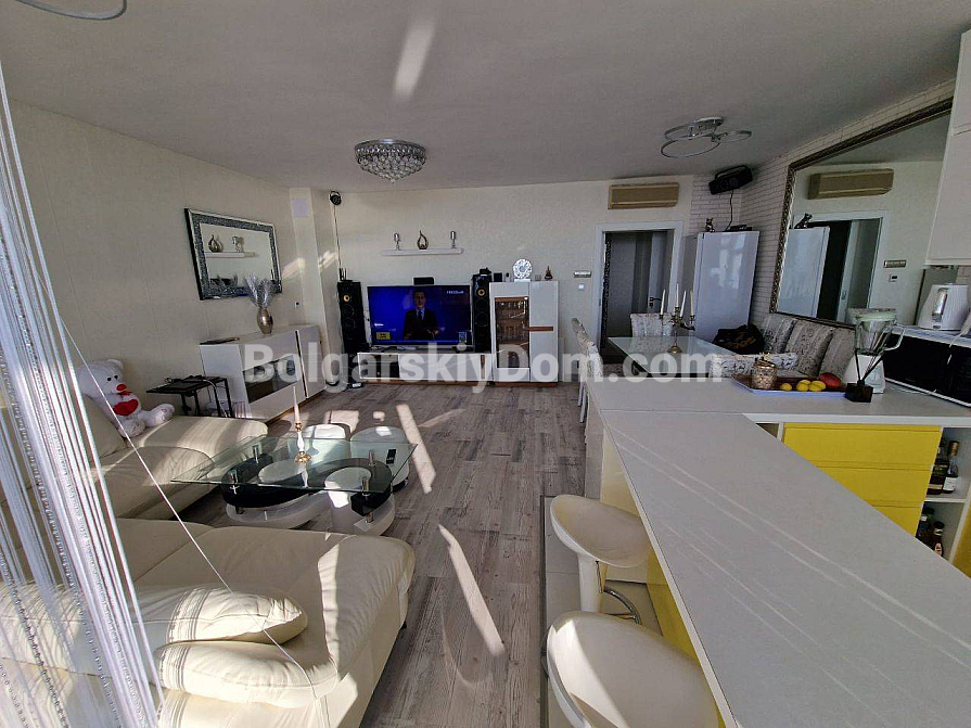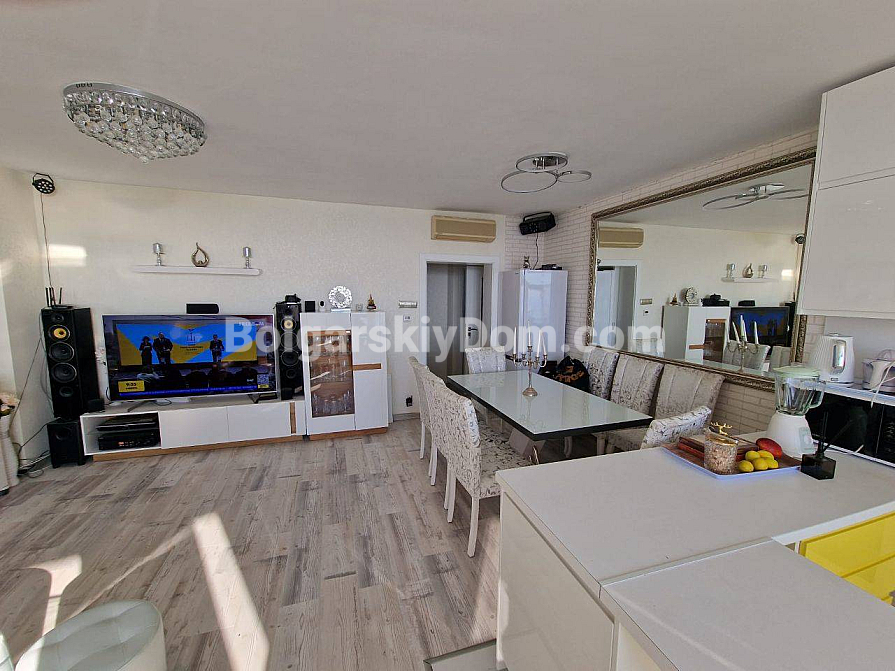 Aussichtsreiche Immobilie nur eine Minute vom Meer entfernt — ein Top-Apartment ist in unseren Katalog aufgenommen! In Ravda steht eine Drei-Zimmer-Wohnung mit 114 m² zum Verkauf, mit durchdachtem Grundriss und hochwertiger technischer Ausstattung. Die Wohnung befindet sich im fünften Stock eines Ziegelgebäudes im Wohnkomplex Oasis und wurde komplett renoviert. Die Wohnung ist für ganzjähriges Wohnen vorbereitet: Fußbodenheizung in allen Räumen, zusätzlich ist die Decke über die gesamte Fläche gedämmt. Der Grundriss umfasst ein geräumiges Wohnzimmer, eine separate Küche und zwei isolierte Schlafzimmer, jedes mit eigenem Bad und Balkonzugang. Außerdem gibt es eine dritte Gästetoilette mit Waschbereich. Die große Terrasse mit direktem Meerblick verfügt über ein transparentes Schließsystem, sodass sie auch im Winter genutzt werden kann. Eines der interessantesten Objekte auf dem Markt — rufen Sie uns an!