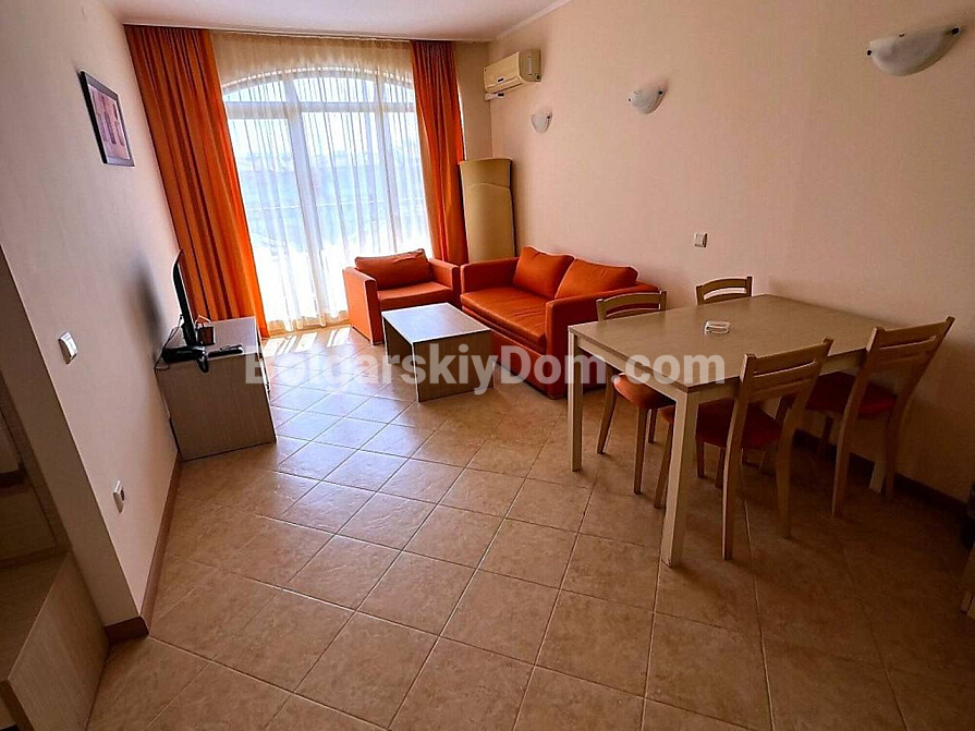 Von Bolgarskiy Dom — ein neues Angebot in einer der beliebtesten und liquidesten Wohnanlagen von Sunny Beach, Royal Sun! Wenn Sie eine echte „einziehen und wohnen“-Lösung in einer Gegend mit gut ausgebauter Infrastruktur suchen, erfüllt dieses Ein-Schlafzimmer-Apartment im obersten Stockwerk alle Anforderungen. Die Wohnfläche von 64 qm ermöglicht eine sehr helle und durchdachte Raumaufteilung: ein großzügiges Wohnzimmer mit Küchenbereich, ein separates Schlafzimmer sowie zwei Terrassen mit Ausrichtung zu unterschiedlichen Seiten. Sie haben stets die Wahl — das lebendige Treiben am Pool zu beobachten oder die Ruhe mit Blick auf die Straße zu genießen. Die Wohnung ist vollständig möbliert, mit einem voll ausgestatteten Badezimmer versehen und sofort bezugsfertig oder zur Vermietung ohne zusätzliche Investitionen.