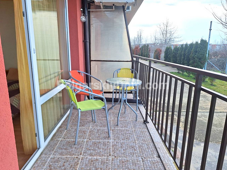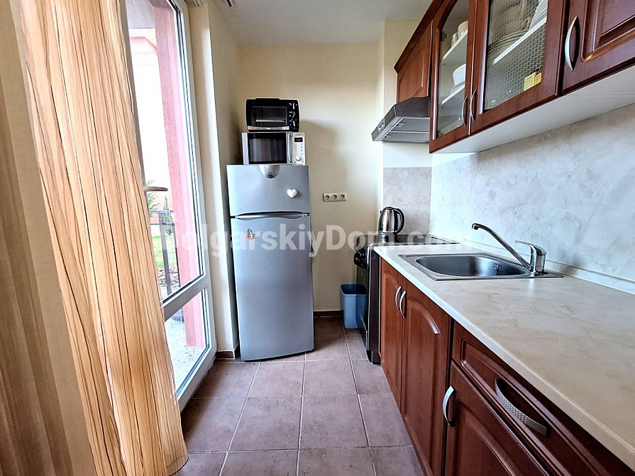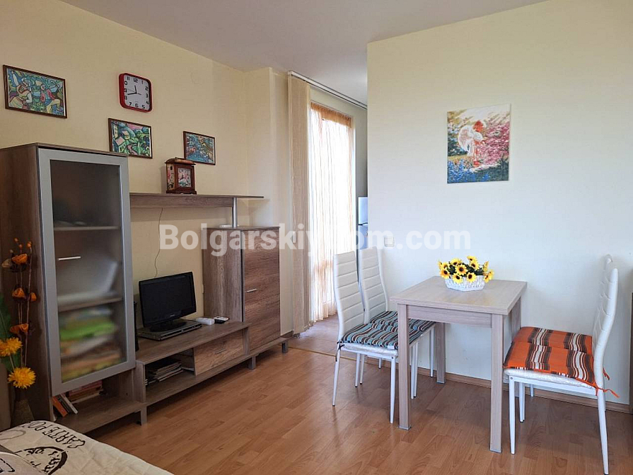 Im Portfolio von Bolgarskiy Dom ist eine großzügige Neuheit für alle erschienen, die einen Umzug oder einen hochwertigen Urlaub in Sunny Beach planen. Im Komplex Holiday Fort Noks steht ein Studio mit einer beeindruckenden Fläche von 46 qm zum Verkauf. Die ungewöhnliche Raumaufteilung ermöglicht eine komfortable Nutzung: ein Schlafbereich, eine Relaxzone mit Sofa sowie ein vollwertiger Küchenblock in einer separaten Nische. Die Wohnung befindet sich im hohen Erdgeschoss, die Fenster blicken auf eine ruhige Parkzone. Möbel und Küche sind aus Massivholz gefertigt und unterstreichen die Zuverlässigkeit und Gemütlichkeit des Interieurs. Zwei Terrassen und eine vollständige Ausstattung an Haushaltsgeräten, einschließlich Waschmaschine und großem Kühlschrank, ermöglichen den sofortigen Einzug nach dem Kauf. Möchten Sie mehr über dieses Angebot erfahren oder einen Online-Besichtigungstermin vereinbaren? Wir freuen uns auf Ihren Anruf!