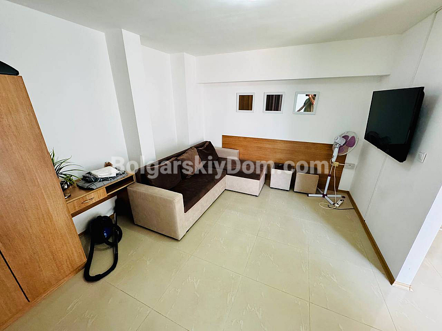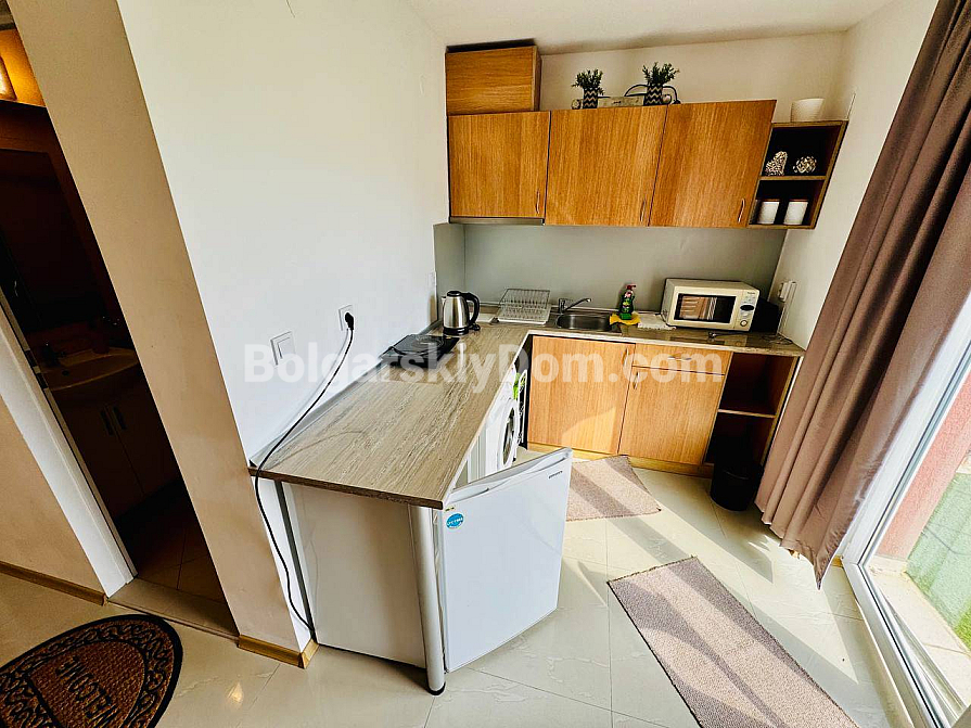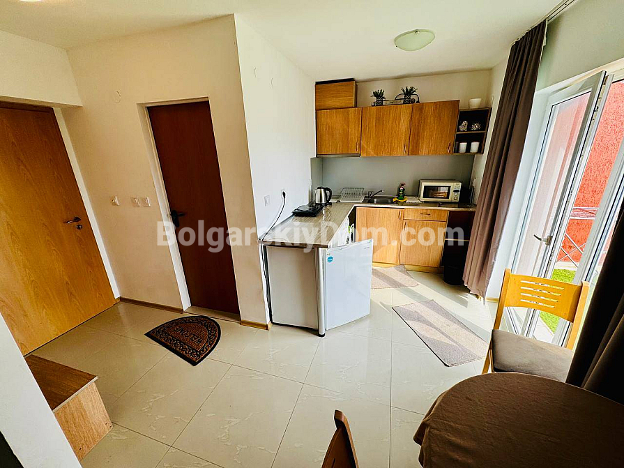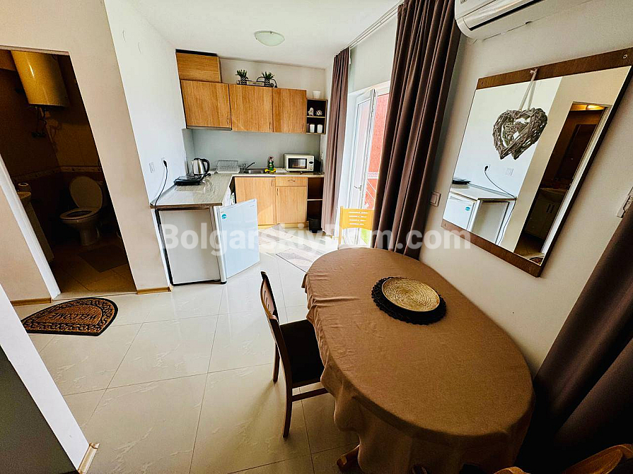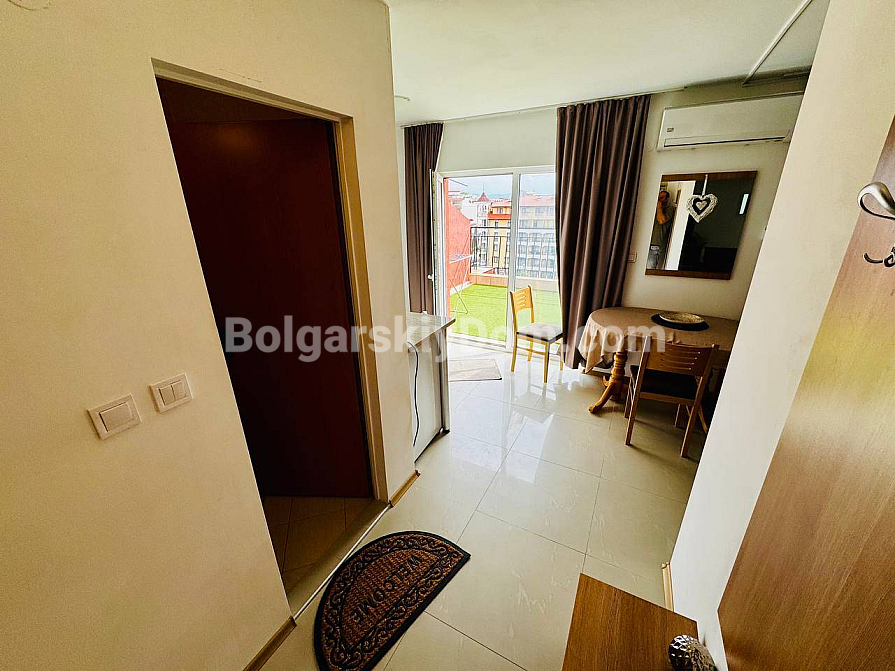 Die Anlage liegt im Zentrum der grünen Zone von Sonnenstrand, nur 400 Meter vom Meer entfernt. Den Eigentümern stehen ein Swimmingpool mit Ruhebereich, ein Fitnessraum, ein Restaurant und Parkplätze zur Verfügung. Die Lage hebt sich durch die vielen Bäume und Parkalleen rund um das Gebäude von der dichten Bebauung des Resorts ab. Die gesamte städtische Infrastruktur wie Supermärkte, Apotheken und Haltestellen des öffentlichen Verkehrs befindet sich in fußläufiger Entfernung. Die Instandhaltungsgebühr beträgt 10 Euro pro qm und Jahr. Die Kombination aus Nähe zum Park und zum Meer macht diese Immobilie zu einem liquiden Objekt mit planbarem Mieteinkommen. Gerne stellen wir aktuelle Unterlagen zur Verfügung oder organisieren eine Online-Besichtigung. Wir freuen uns auf Ihre Anfrage.