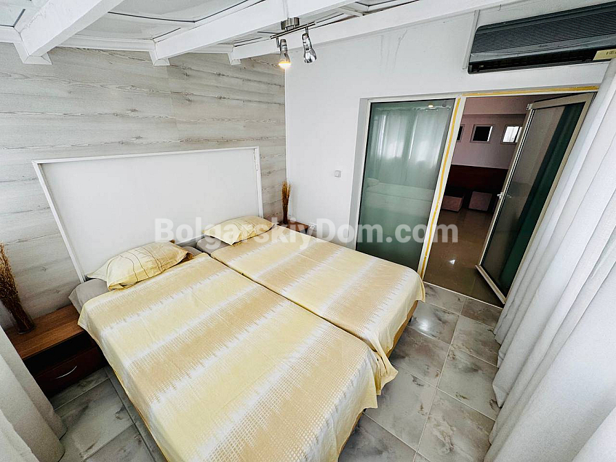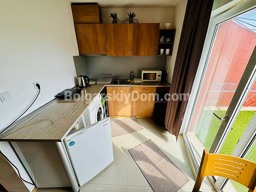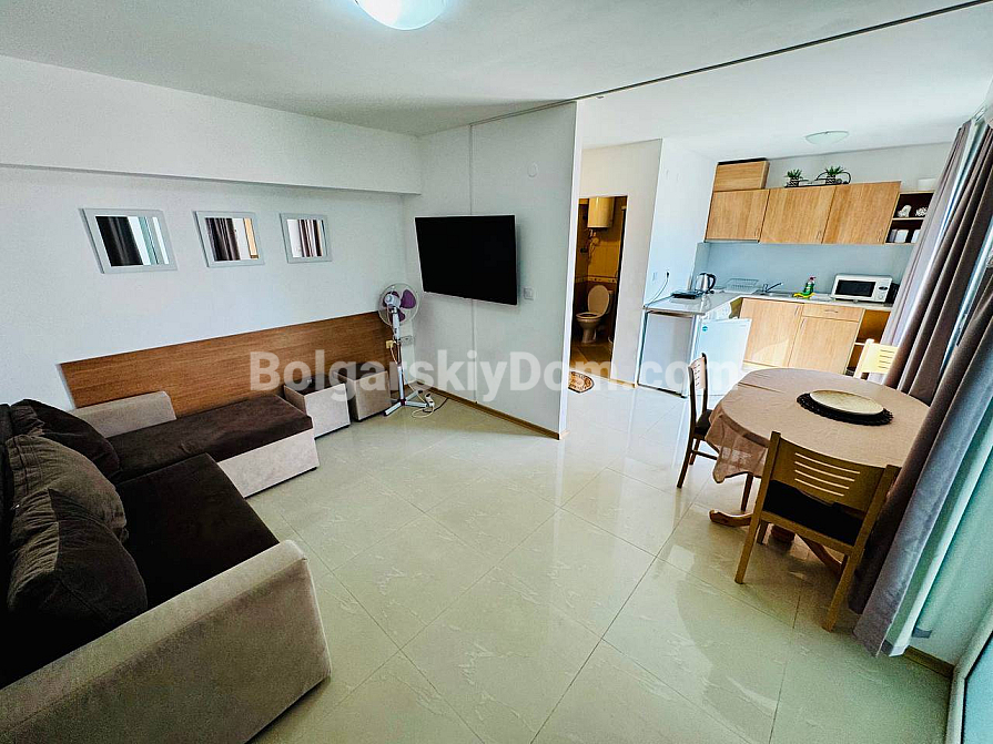 Bolgarskiy Dom eröffnet den Verkauf im Wohnkomplex Aphrodite 1. Das Apartment hat eine Gesamtfläche von 67 qm und befindet sich im fünften Stock, was Privatsphäre und keine Geräusche von obenliegenden Nachbarn garantiert. Die Raumaufteilung ist vollständig funktional und umfasst ein helles Wohnzimmer mit Küchenbereich, ein separates Schlafzimmer sowie eine Terrasse. Die Immobilie wird schlüsselfertig mit kompletter Möblierung und Ausstattung verkauft. Das Vorhandensein von Akt 16 sowie der Sekundärstatus der Immobilie ermöglichen eine zügige Abwicklung des Kaufprozesses und eine sofortige Nutzung.