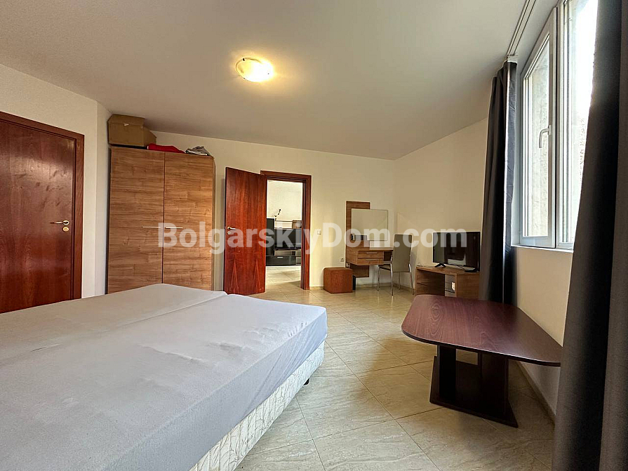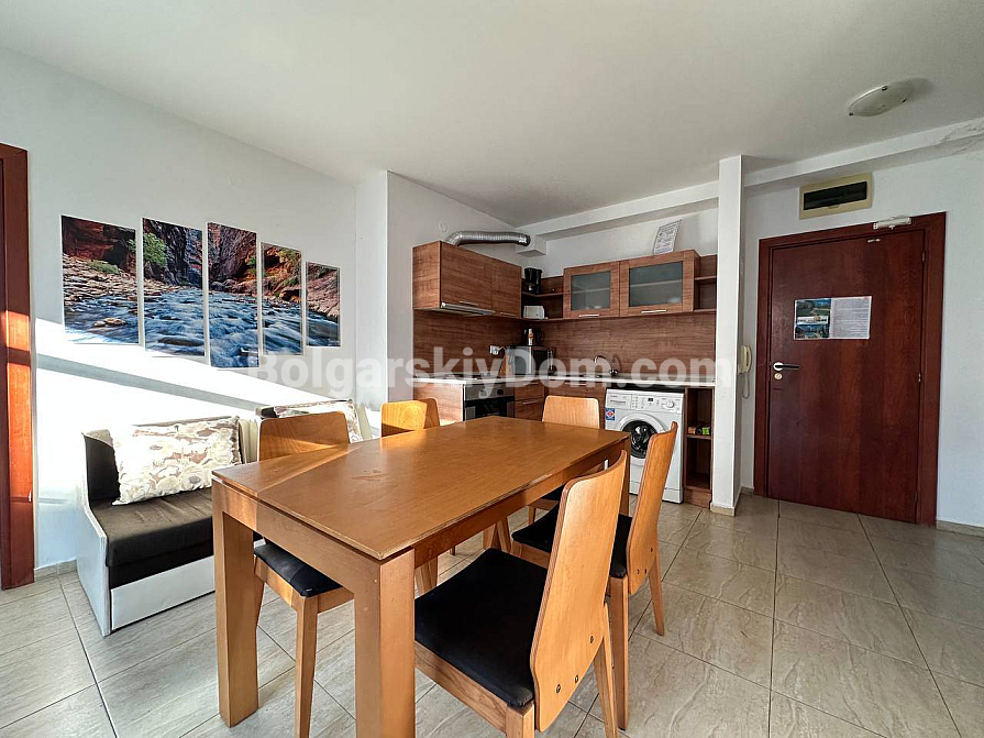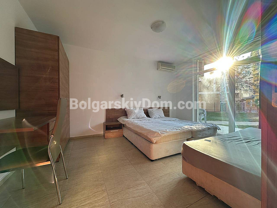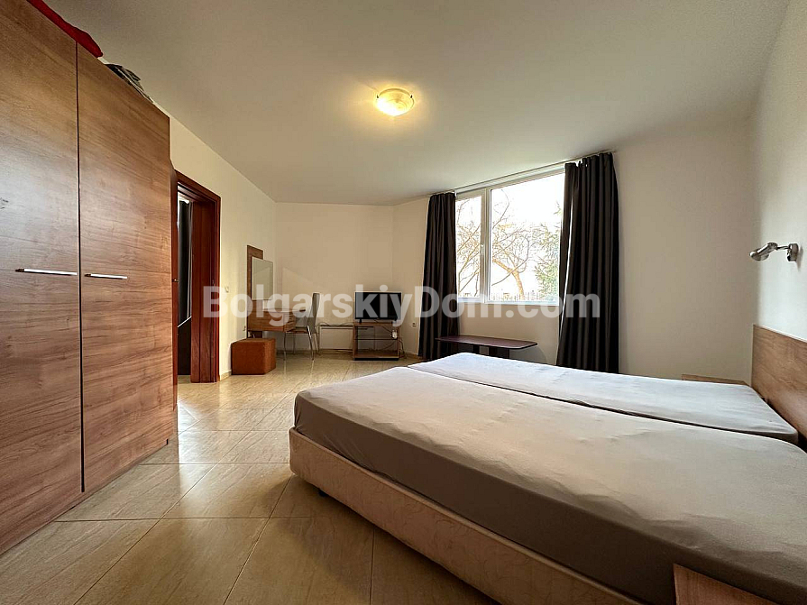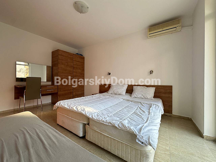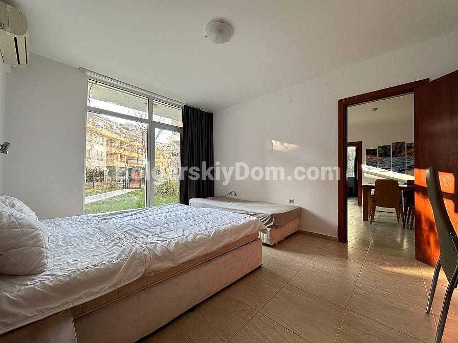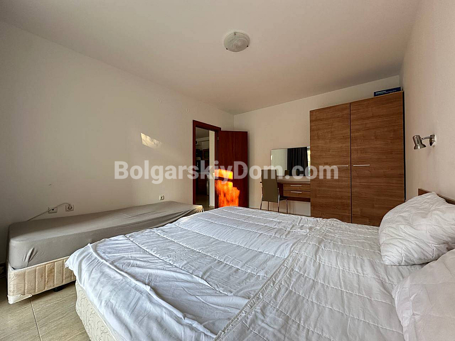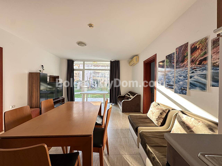 Große Ergänzung des Bolgarskiy Dom-Katalogs! Unser Team bietet eine Drei-Zimmer-Wohnung zum Verkauf im zentralen Bereich von Sunny Beach, im gut gepflegten San Village-Komplex. Die Wohnung hat eine Gesamtfläche von 78 m², befindet sich im ersten Stock und verfügt über eine funktionale Aufteilung mit zwei Schlafzimmern und zwei Badezimmern. Das Hauptmerkmal der Immobilie ist die großzügige Veranda mit Zugang zum Garten, sodass Sie buchstäblich Ihren eigenen Hof haben! Die Wohnung ist voll ausgestattet und bezugsfertig, bietet hochwertigen Wohnraum für dauerhaftes Leben oder saisonale Urlaube am Meer.