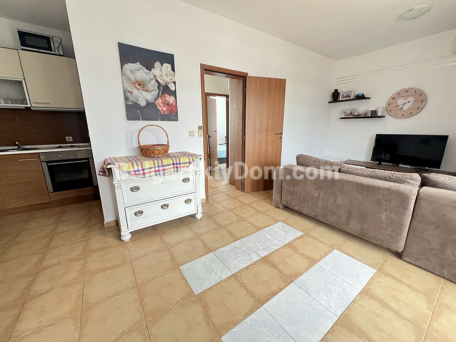 Ausgezeichnete Immobilie von Bolgarskiy Dom zu verkaufen! An der Grenze zwischen Sunny Beach und Kosharitsa wird eine Dreizimmerwohnung mit 76 qm und angenehmem Meerblick im Wohnkomplex Nessebar View angeboten. Die Wohnung befindet sich im zweiten Stock und wird vollständig möbliert verkauft — Möbel und Geräte sind im Preis enthalten. Der Angebotspreis liegt unter 1000 Euro pro Quadratmeter und unterstreicht den Wert dieses Kaufs. Gemütlich und gepflegt, eignet sie sich sowohl für Urlaubsaufenthalte als auch für langfristiges Wohnen (der Komplex verfügt über Akt 16).