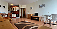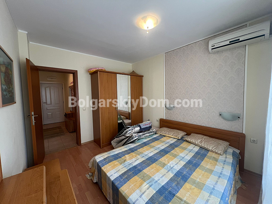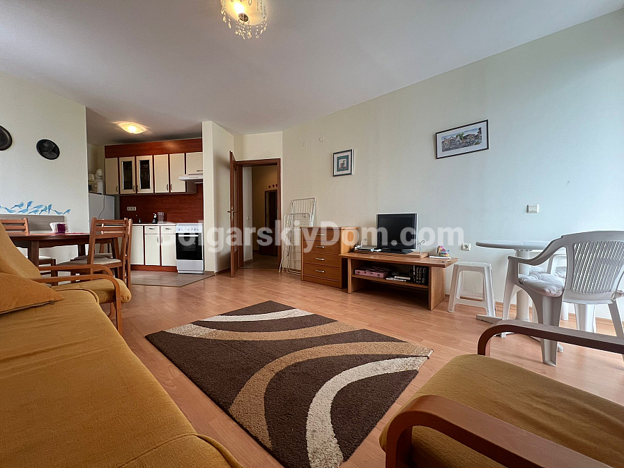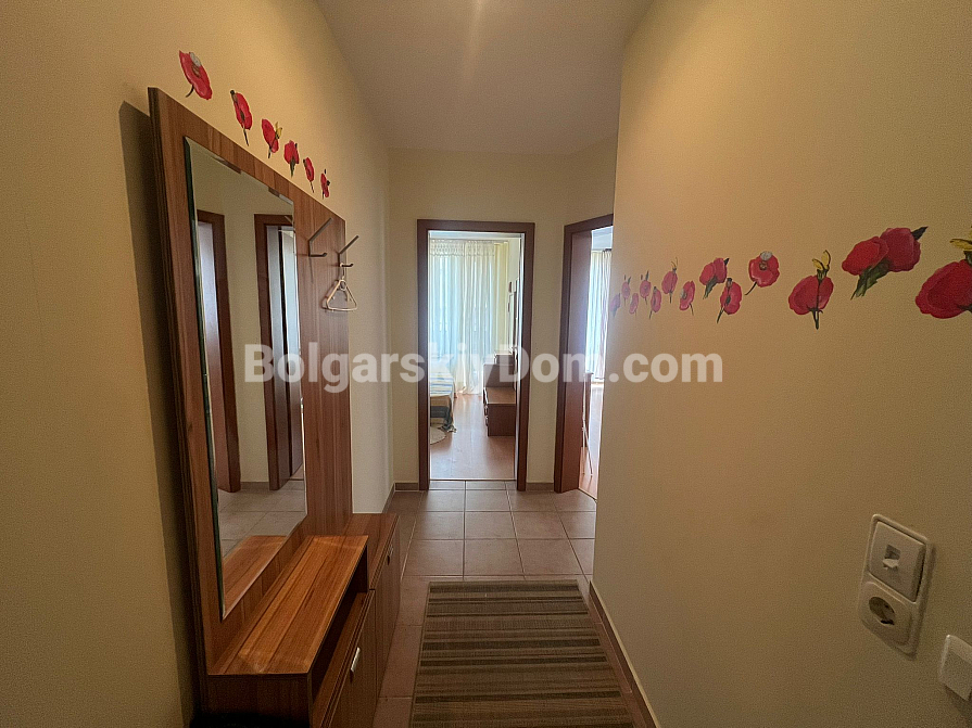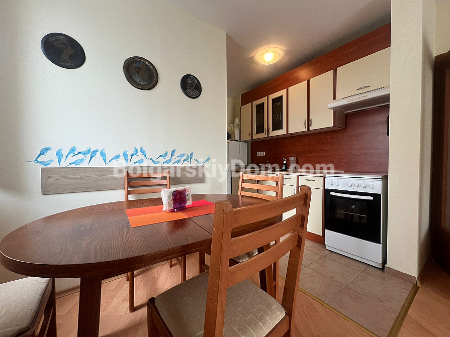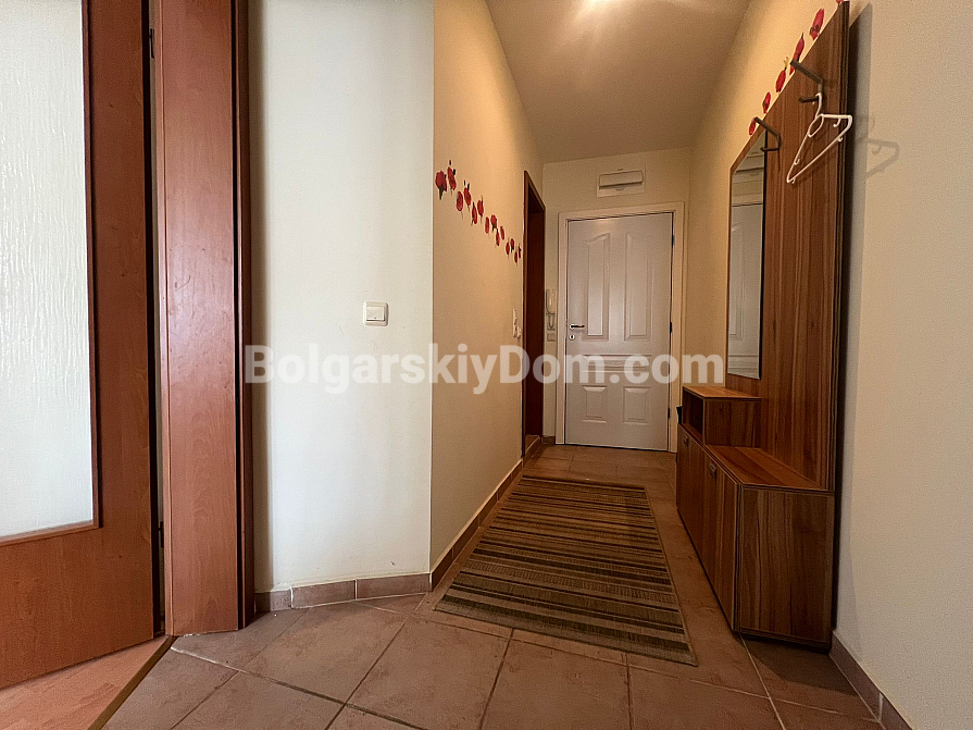 Die Lage ist hier wirklich einzigartig — im Stadtteil Robinson zwischen Sveti Vlas und Elenite. Sie wohnen buchstäblich zwischen dem Meer (nur 200 Meter bis zum Strand) und grünen Hügeln, was für ein angenehmes Mikroklima sorgt. Die Infrastruktur der Anlage ist nahezu vorbildlich: 17 Swimmingpools, Wasserrutschen, Tennisplätze, Restaurants und Geschäfte. Ein kontrollierter Zugang ist vorhanden, ebenso wie ein kostenloser, bewachter Parkplatz für Bewohner. Das Gebäude verfügt über Akt 16, Strom- und Wasserpreise gelten zu Haushaltstarifen, wodurch die laufenden Kosten moderat bleiben. Eine ideale Option sowohl für dauerhaftes Wohnen am Meer als auch für eine aktive Vermietung.