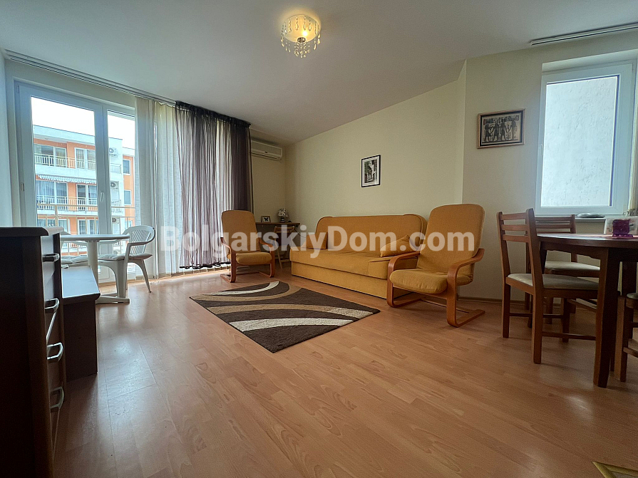 Sichern Sie sich ein attraktives Angebot mit Panoramablick auf das Meer im Imperial Fort — einer der größten und durchdachtesten Wohnanlagen an der Küste. Es handelt sich um eine Zwei-Zimmer-Wohnung mit einer Gesamtfläche von 65 m², gelegen im vierten Stock eines Gebäudes, das nur 200 Meter vom Meer entfernt ist. Die Raumaufteilung ist komfortabel: ein großzügiges Wohnzimmer mit klar abgegrenzten Küchen- und Ruhebereichen, ein separates Schlafzimmer sowie ein Balkon mit Meerblick. Das Apartment ist vollständig möbliert und mit Haushaltsgeräten ausgestattet, sodass ein Einzug direkt nach dem Kauf möglich ist.