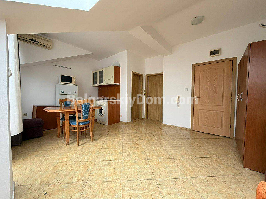 Neu in unserer Preisliste: eine kompakte 1-Zimmer-Wohnung im Komplex Bravo 5 zu einem hervorragenden Preis. Die Gesamtfläche der Immobilie beträgt 52 m² und befindet sich im fünften Stock. Die Wohnung ist komplett möbliert und mit Elektrogeräten ausgestattet, die alle im Endpreis enthalten sind. Wir sind überzeugt, dass dies eine liquide und praktische Option für diejenigen ist, die eine Immobilie mit minimalen Unterhaltskosten suchen: Die jährliche Unterhaltsgebühr beträgt hier nur 8 Euro pro Quadratmeter. Der Komplex Bravo 5 befindet sich im zentralen und dennoch ruhigen Teil von Sonnenstrand, nur 500 Meter vom Sandstrand entfernt. Das Gebäude verfügt über das Gesetz 16 und alle notwendigen Dokumente für eine schnelle Transaktion. Die Wohnung verfügt über einen kleinen gemütlichen Balkon und die Aufteilung ermöglicht eine rationelle Nutzung jedes Quadratmeters. Die Infrastruktur der Gegend ist gut ausgebaut: Supermärkte, Cafés und ganzjährig geöffnete Bushaltestellen befinden sich in der Nähe. Das Team von Bolgarskiy Dom ist bereit, eine Besichtigung zu arrangieren und eine vollständige Berechnung der Kosten für die Eigentumsübertragung vorzunehmen.