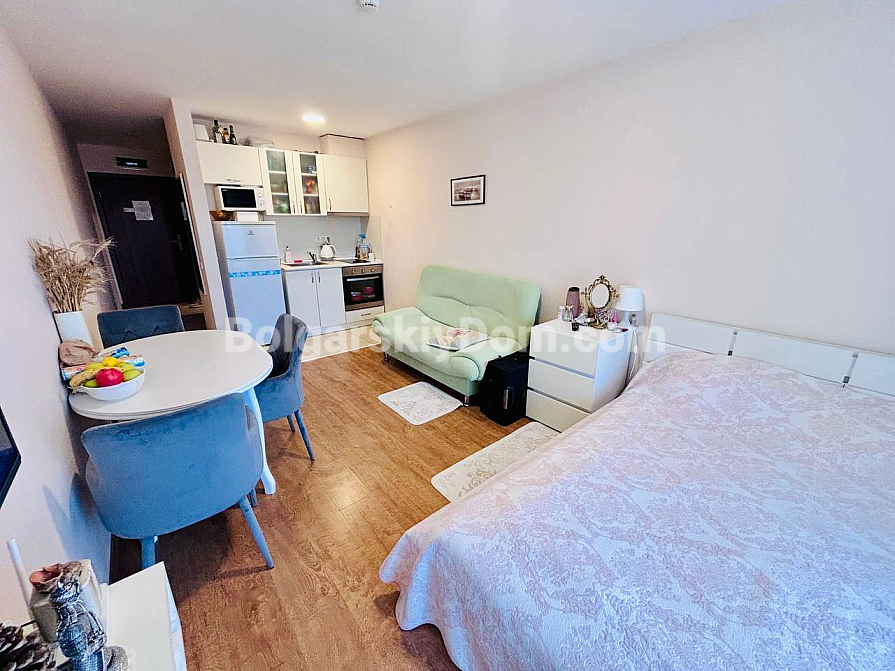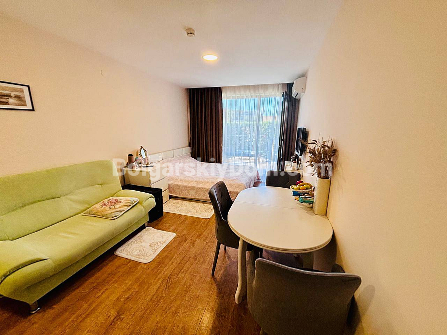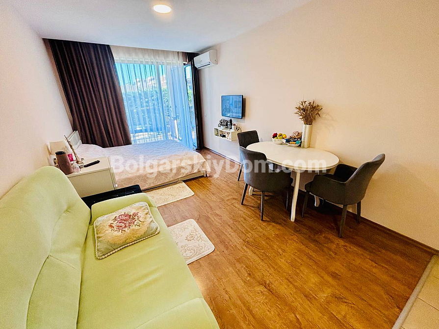 Studio mit Meerblick in Sweti Wlas – neu im Portfolio der Immobilienagentur Bolgarskiy Dom! 45 qm im dritten Stock im Komplex Premier Fort Beach, Balkon mit Meerpanorama, Aufzug und Parkplatz. Die Wohnung ist vollständig möbliert und ausgestattet: Sofa, Bett, Essbereich mit Tisch und Stühlen, Fernseher, Klimaanlage sowie gut erhaltener Parkettboden. Alles ist bereit – Sie können selbst einziehen oder noch in dieser Saison vermieten. Sweti Wlas mit seiner hohen Mietnachfrage ermöglicht eine schnelle Amortisation der Investition.