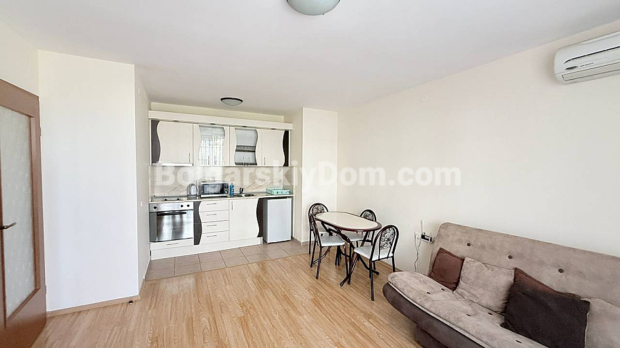 Im Vergleich zu anderen Apartmentanlagen ist Crown Fort Noks eine ganze Stadt innerhalb des Resorts mit erstklassigem Service. Auf dem geschlossenen Gelände erwarten Sie saubere Pools, gemütliche Pavillons mit Grillbereichen und schattige Alleen zwischen Pinien. Die Anlage wird ganzjährig bewacht, es gibt kostenlose Parkplätze und einen Aufzug. Die Wartungsgebühr beträgt 14 Euro. Das Meer ist nur 300 Meter entfernt – etwa 10 Minuten zu Fuß. Bolgarskiy Dom übernimmt die vollständige Objektprüfung und begleitet Sie Schritt für Schritt durch jeden Abschnitt des Kaufprozesses.