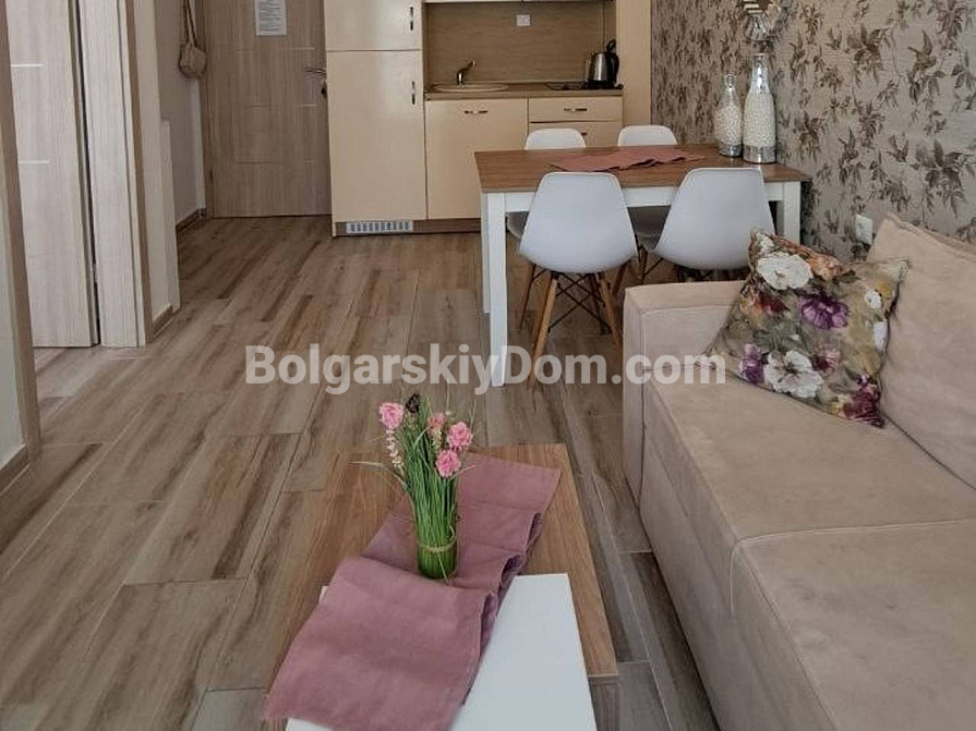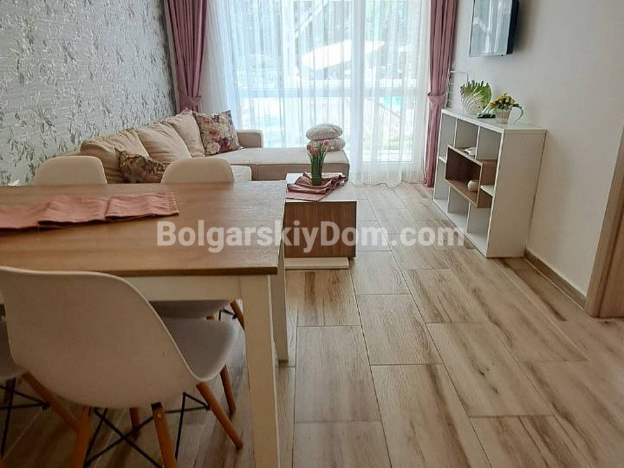 Besichtigungen laufen bereits! Zum Verkauf steht eine 2-Zimmer-Wohnung (1 Schlafzimmer) im Luxuskomplex Sweet Home 6, Sunny Beach — kompakte 43 m² im Erdgeschoss, bezugsfertig. Separates Schlafzimmer, helles Wohnzimmer mit Küche. Aus den Fenstern bietet sich ein Blick auf die Wasserfläche des Pools und die gepflegte Anlage des Komplexes. Das Apartment ist vollständig mit neuen Möbeln ausgestattet, moderne Geräte sind installiert, das Badezimmer ist komplett eingerichtet. Das Erdgeschoss ist besonders komfortabel — kein Warten auf den Aufzug, direkter Zugang nach draußen. Act 16 liegt vor und bestätigt die vollständige Fertigstellung des Objekts.
