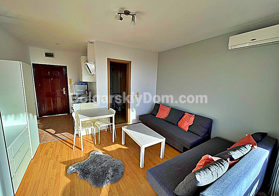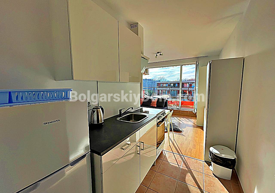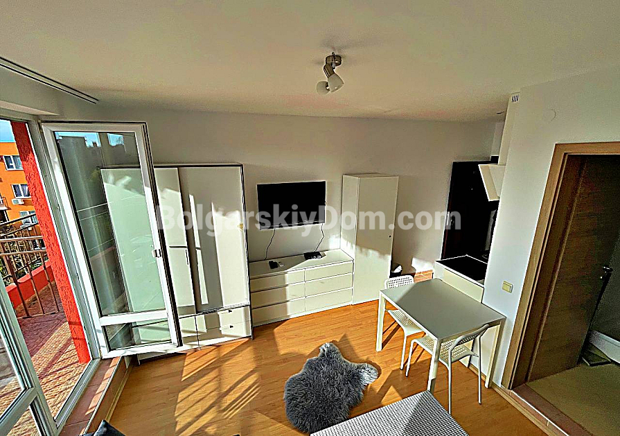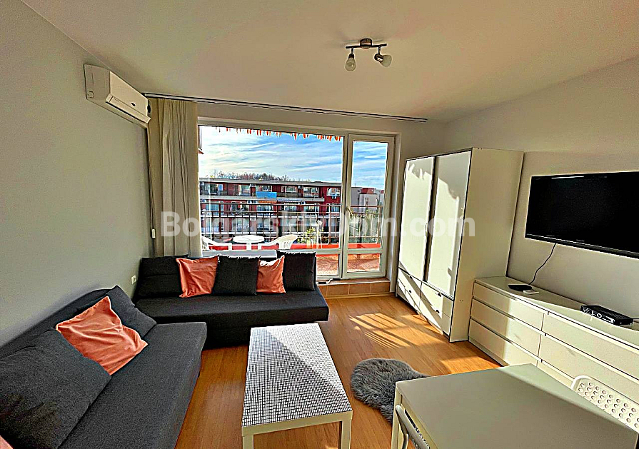 Neu im Katalog! Die Immobilienagentur Bolgarskiy Dom präsentiert ein Studio-Apartment mit 36 m² im Familienkomplex Orchid Fort Garden in Sonnenstrand. Vierter Stock mit Blick auf den zentralen Pool. Die Aufteilung ist typisch für ein Studio: Eingangsbereich, Wohnraum mit Küchenzone, Badezimmer mit Duschkabine sowie eine Terrasse. Die Wohnung ist vollständig möbliert und mit Haushaltsgeräten ausgestattet und kann am Tag des Kaufs bezogen werden. Der vierte Stock ist für Investoren optimal, da der Straßenlärm nicht zu hören ist. Die Terrasse kann als Erholungsbereich gestaltet werden.
