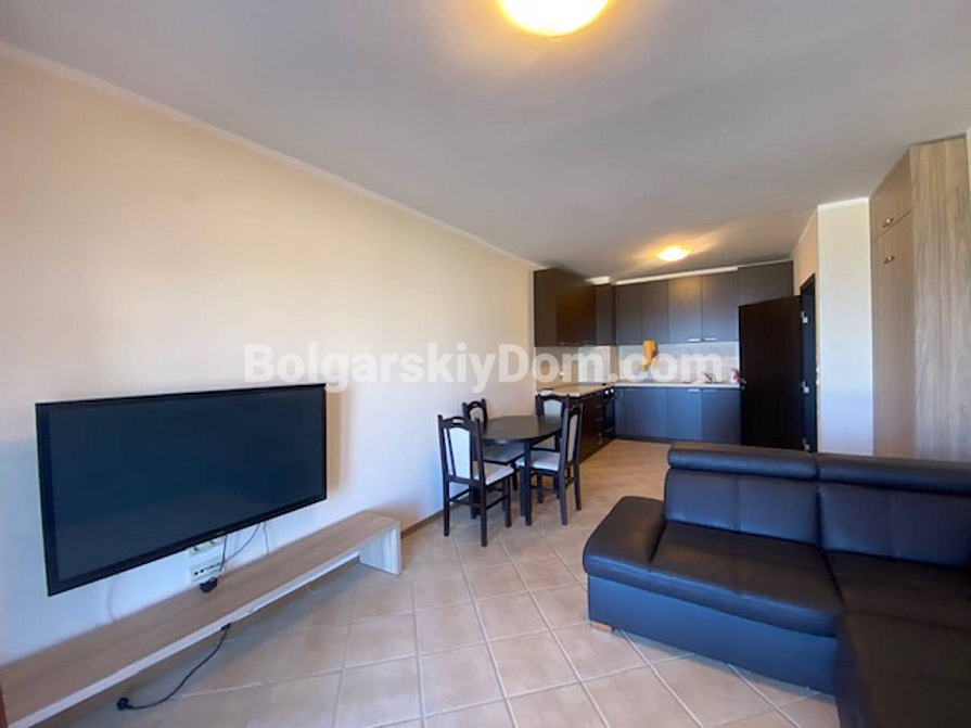 Ein seltenes Angebot auf dem Sekundärimmobilienmarkt: Die Immobilienagentur Bolgarskiy Dom hat ein Apartment mit Meerblick mit einem Schlafzimmer im Komplex Primea Beach Residence am Strand Nestinarka in Tsarevo in den Katalog aufgenommen. Die Wohnfläche beträgt 74 m², die Wohnung befindet sich im zweiten Stock und beide Zimmer haben Meerblick. Das bedeutet, dass sich der Blick auf das Meer vom Wohnzimmer, vom Schlafzimmer sowie von der Terrasse öffnet. Das Wohnzimmer ist mit der Küchenzone kombiniert, das Schlafzimmer ist separat, dazu kommt ein Badezimmer. Der zweite Stock ist eine optimale Höhe: freier Meerblick und der Strand ist nur wenige Schritte entfernt. Die Wohnung ist komplett ausgestattet und bezugsfertig.