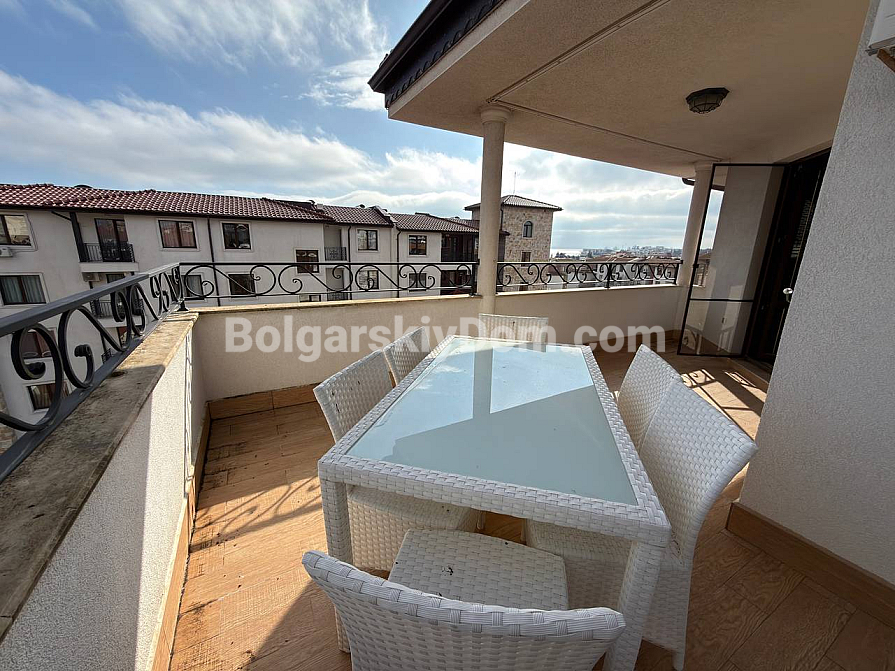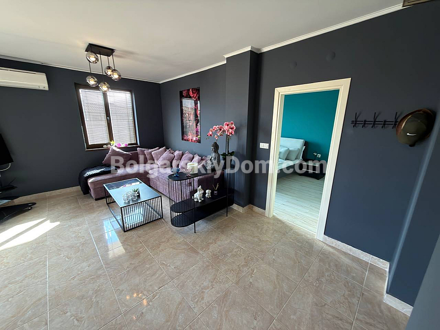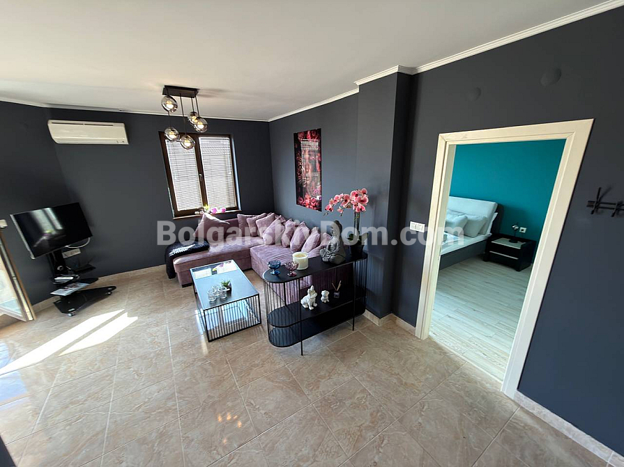 Exklusives Angebot in Nessebar — eine geräumige Drei-Zimmer-Wohnung mit 121 m², aus einem Zwei-Zimmer-Grundriss für maximale Funktionalität umgebaut. Besonders hervorzuheben sind zwei vollwertige Badezimmer und zwei Balkone, die außergewöhnlichen Komfort für eine große Familie oder eine Gruppe von Touristen bieten. Die Wohnung befindet sich im sechsten Stock, was Ruhe, keine Nachbarn darüber und eine hervorragende Luftzirkulation garantiert. Das Interieur ist vollständig möbliert und mit Geräten ausgestattet, bereit zum Einzug direkt nach dem Kauf.