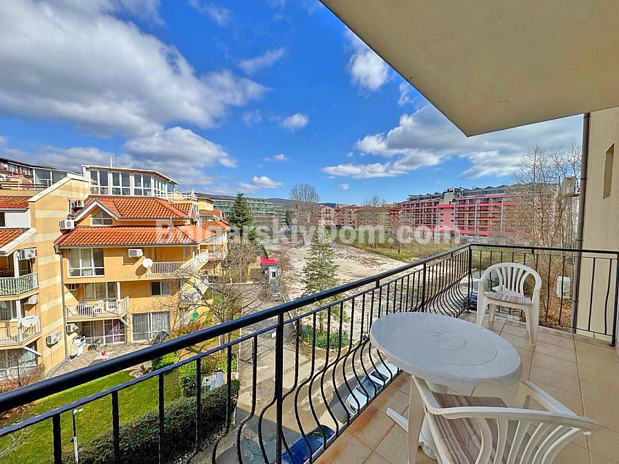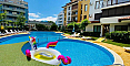 Der Komplex Diamond Bay ist eine geschlossene Wohnanlage im ruhigen nördlichen Teil des Resorts, gleichzeitig mit hervorragender Lage: großer Außenpool mit Kinderbereich, Sonnenliegen und Sonnenschirme, Restaurant mit Bar, Lobby, 24-Stunden-Sicherheitsdienst, Videoüberwachung, gepflegte Grünanlagen und Parkplätze. Die jährliche Wartungsgebühr beträgt nur 8 Euro pro m² (eine der niedrigsten in der Gegend für eine Anlage mit Pool und vollem Service). Der Sandstrand ist etwa 400–450 Meter zu Fuß entfernt, in der Nähe befinden sich Supermärkte (darunter Lidl), Markt, Apotheken, Cafés und Haltestellen des öffentlichen Verkehrs – die gesamte Infrastruktur des Resorts ist fußläufig erreichbar. Um eine Besichtigung zu reservieren und den Preis zu besprechen, schreiben Sie uns!