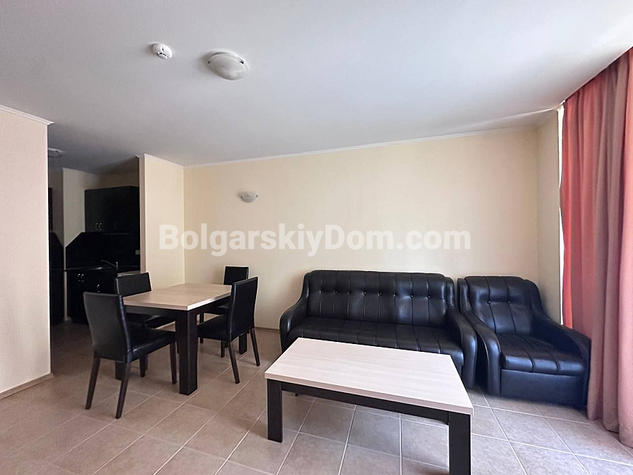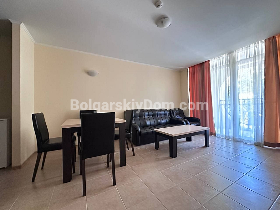 DER KOMPLEX FUNKTIONIERT DERZEIT NICHT. Zum Verkauf steht ein Apartment mit einem Schlafzimmer im saisonalen LCD Sunset Resort, einer echten Oase absoluten Komforts, nur fünfzig Meter vom Strand entfernt. Die Fläche der Wohnung beträgt 68 qm, sie befindet sich auf der zweiten Wohnebene mit einem schönen Blick auf den Parkbereich des Territoriums. Großer Balkon mit schmiedeeisernen Oberflächen, Möbel im einheitlichen Stil und in ausgezeichnetem Zustand. Die beste Wahl für Investitionen!